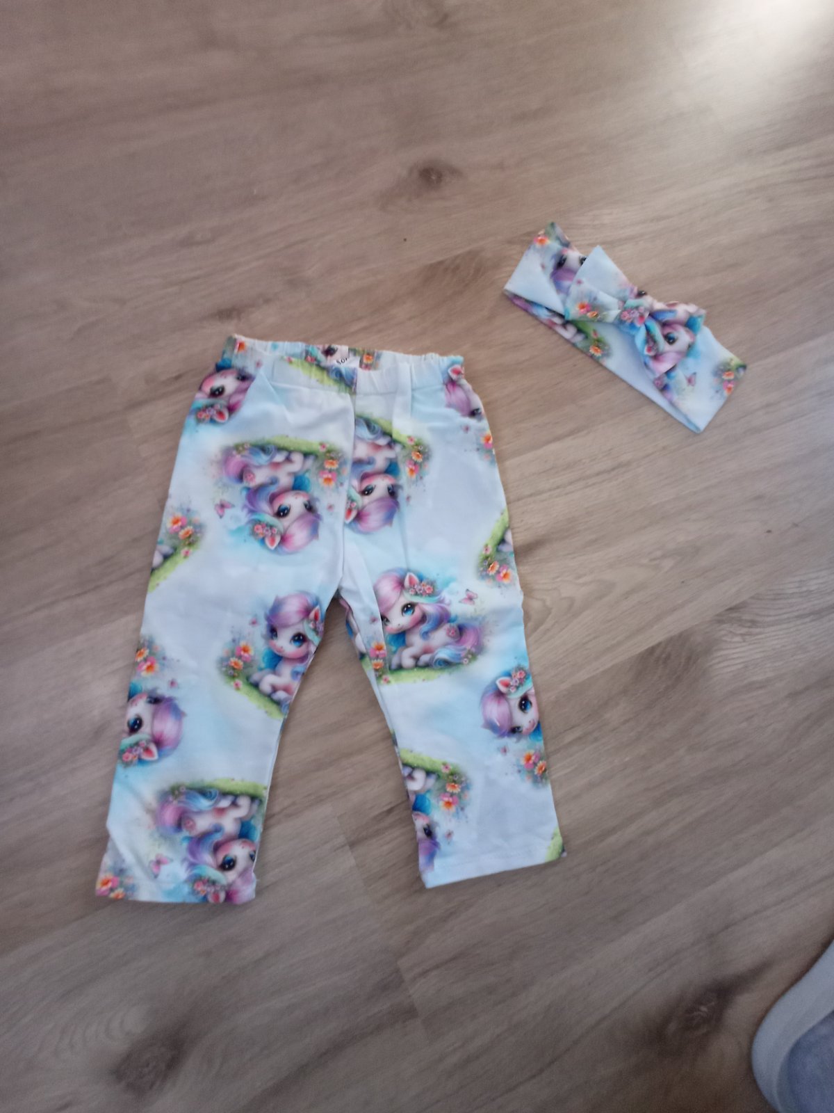 Predám krásne 3/4 leginy pre dievčatko spolu s čelenkou. Veľkosť sedí na 5-6 rokov. Sú ako nové, len raz oblečené ( nestihla vynosiť ). Materiál 95% bavlna a 5% elastan. Legíny šila krajčírka na zákazku. Cena legín spolu s čelenkou 6€+ poštovné .
