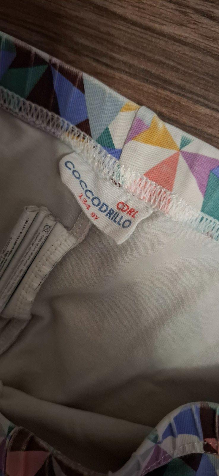 Zachovale,urcite este posluzia.Na ruzovych dve mini dierky,mala si sama odsrihla visacku ,inak bez poskodenia. Dierky su v zadu na zadku ako bola visacka,pod trickom nevidno.Dlzka z boku-76cm/ pas ...