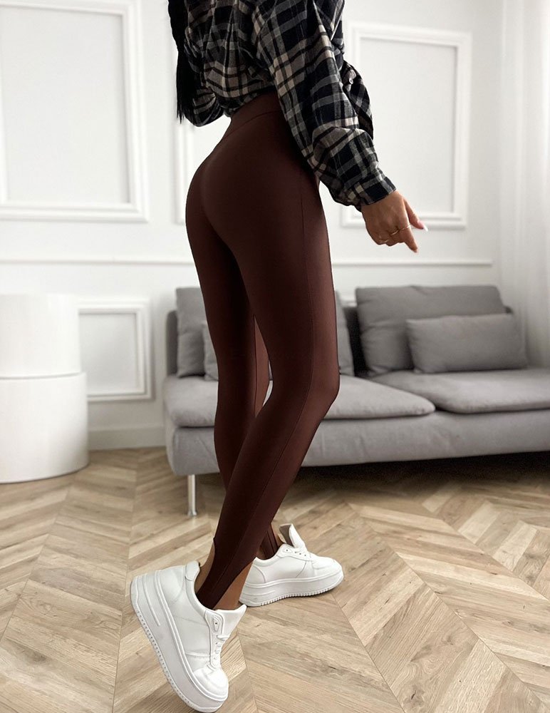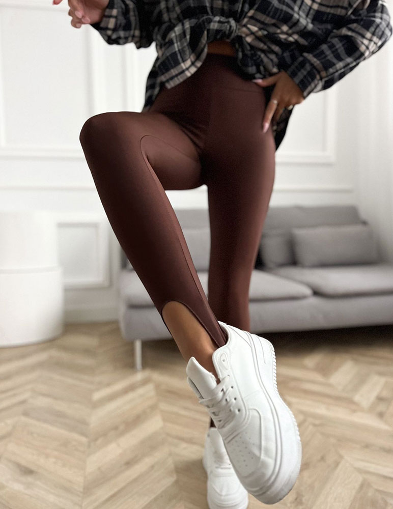 Dámske hnedé legíny Fatima z jemného a kvalitného materiálu. Legíny so spodným remienkom umožňujú, že sa nohavice nebudú pri nosení vyvliekať. Legíny sú veľmi pohodlné a štýlové.
