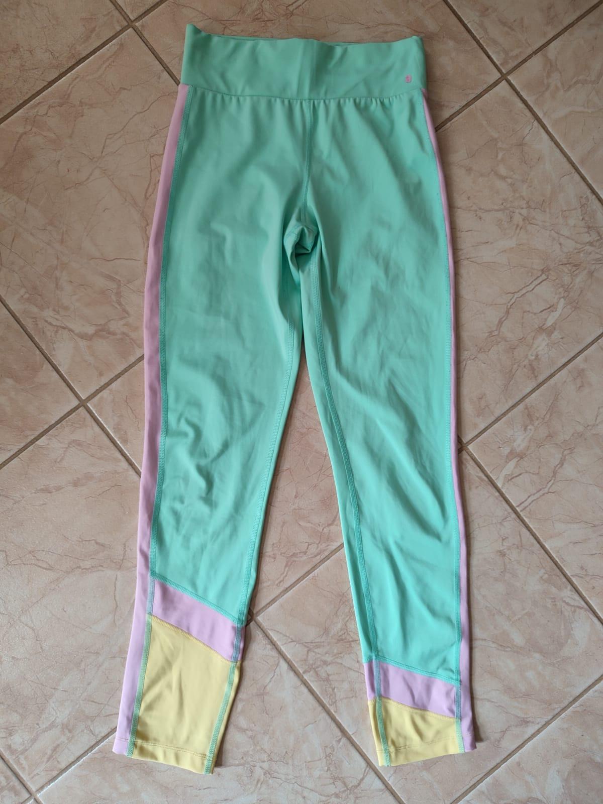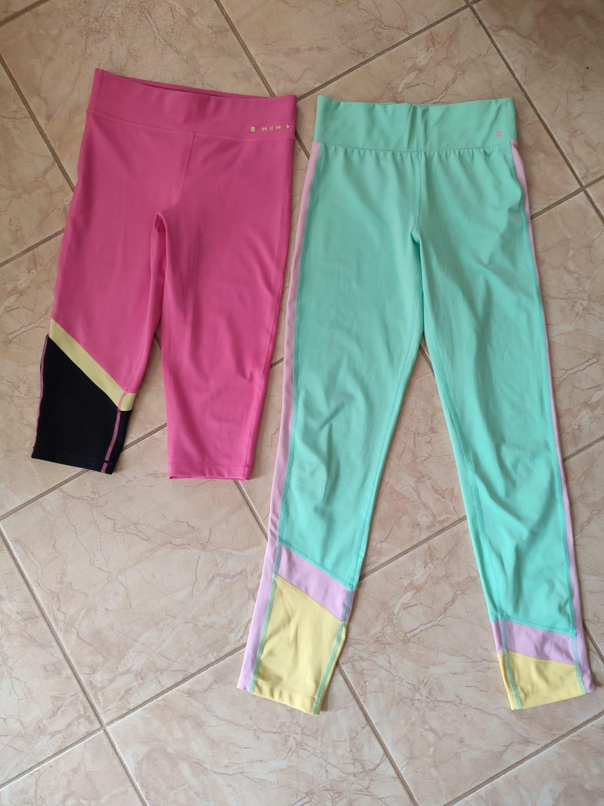 Športové legíny z funkčného materiálu. Jedny dlhé (celková dĺžka 87 cm), druhé 3/4 (celková dĺžka 60 cm). Kupované ako dvojpack v Tchibo. Uvedená veľkosť 158/164. Veľmi málo nosené, stav ako nové, bez poškodení. Cena za obidvoje.