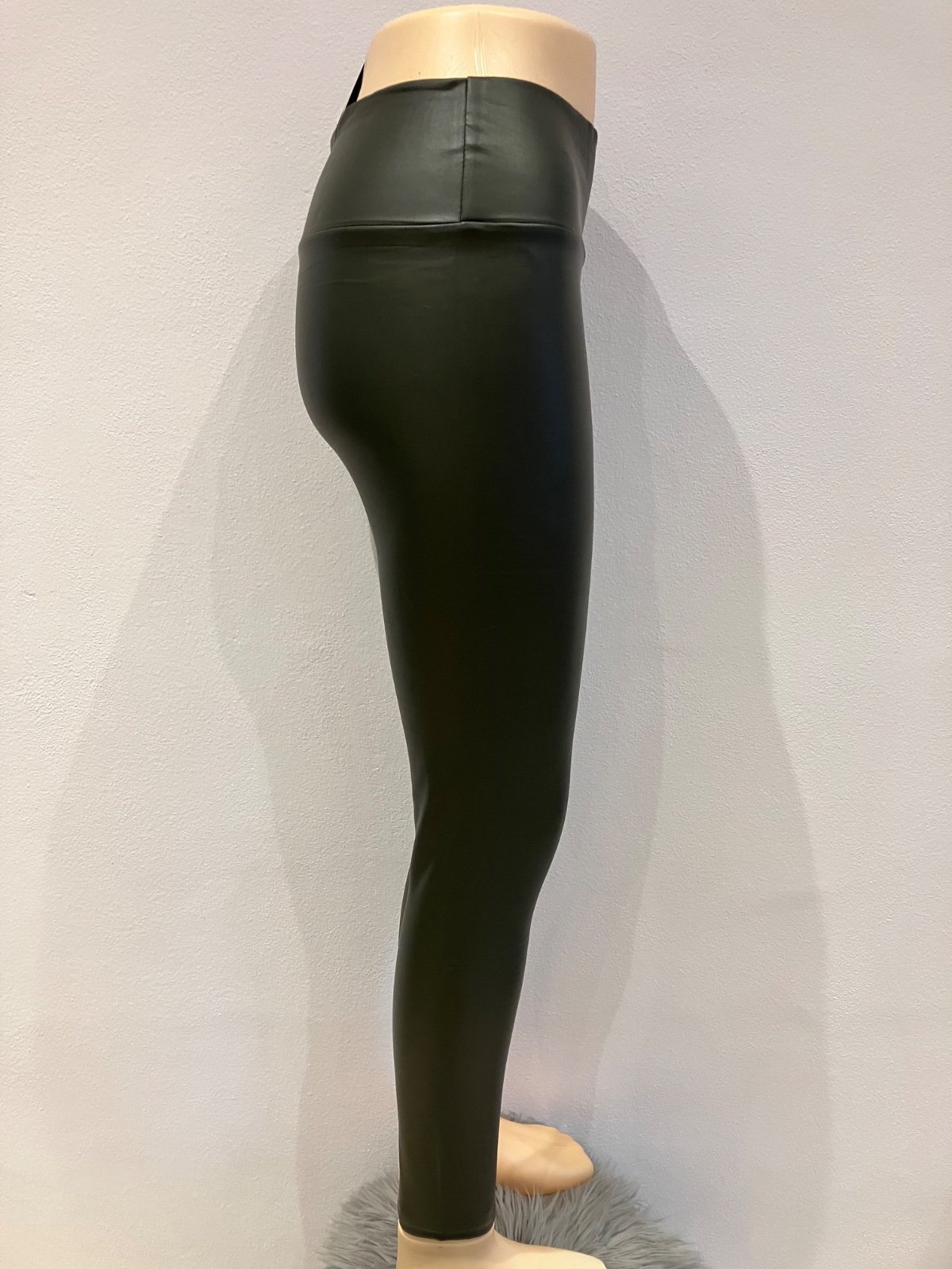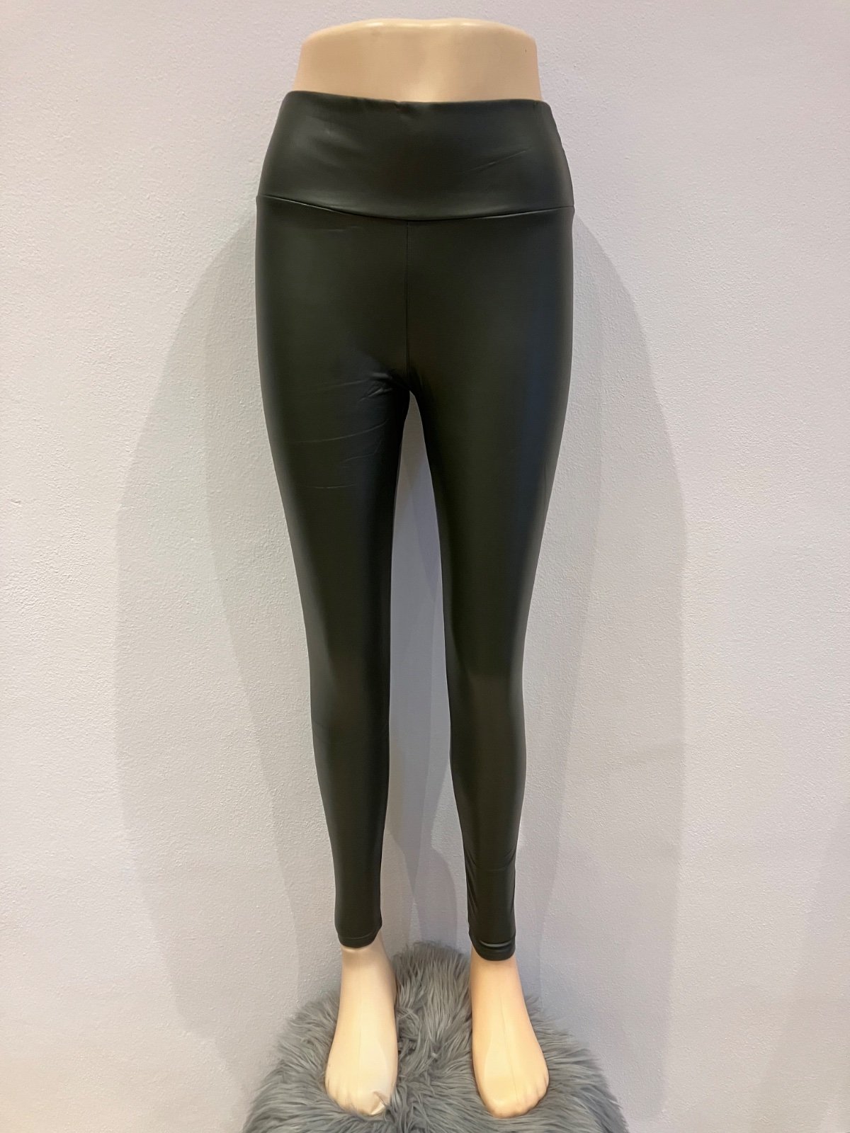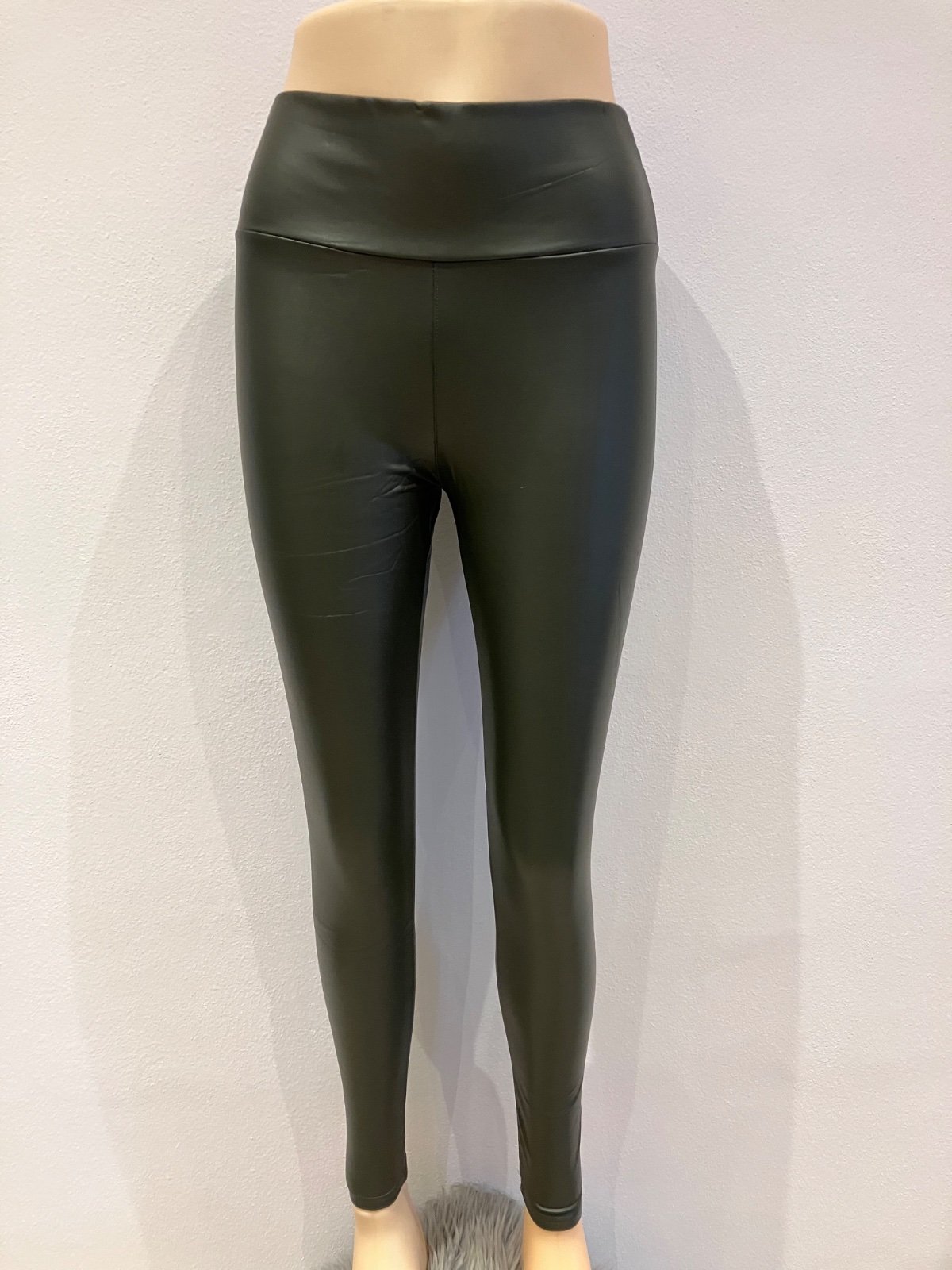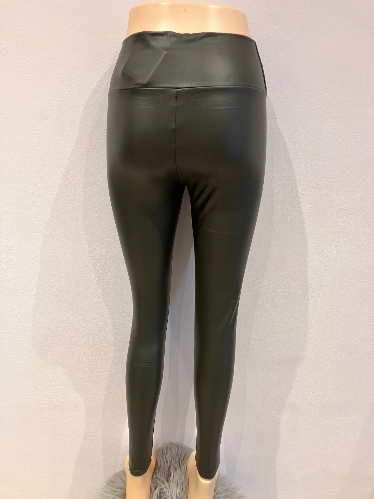 Dámske zateplené koženkové legíny khaki (M)