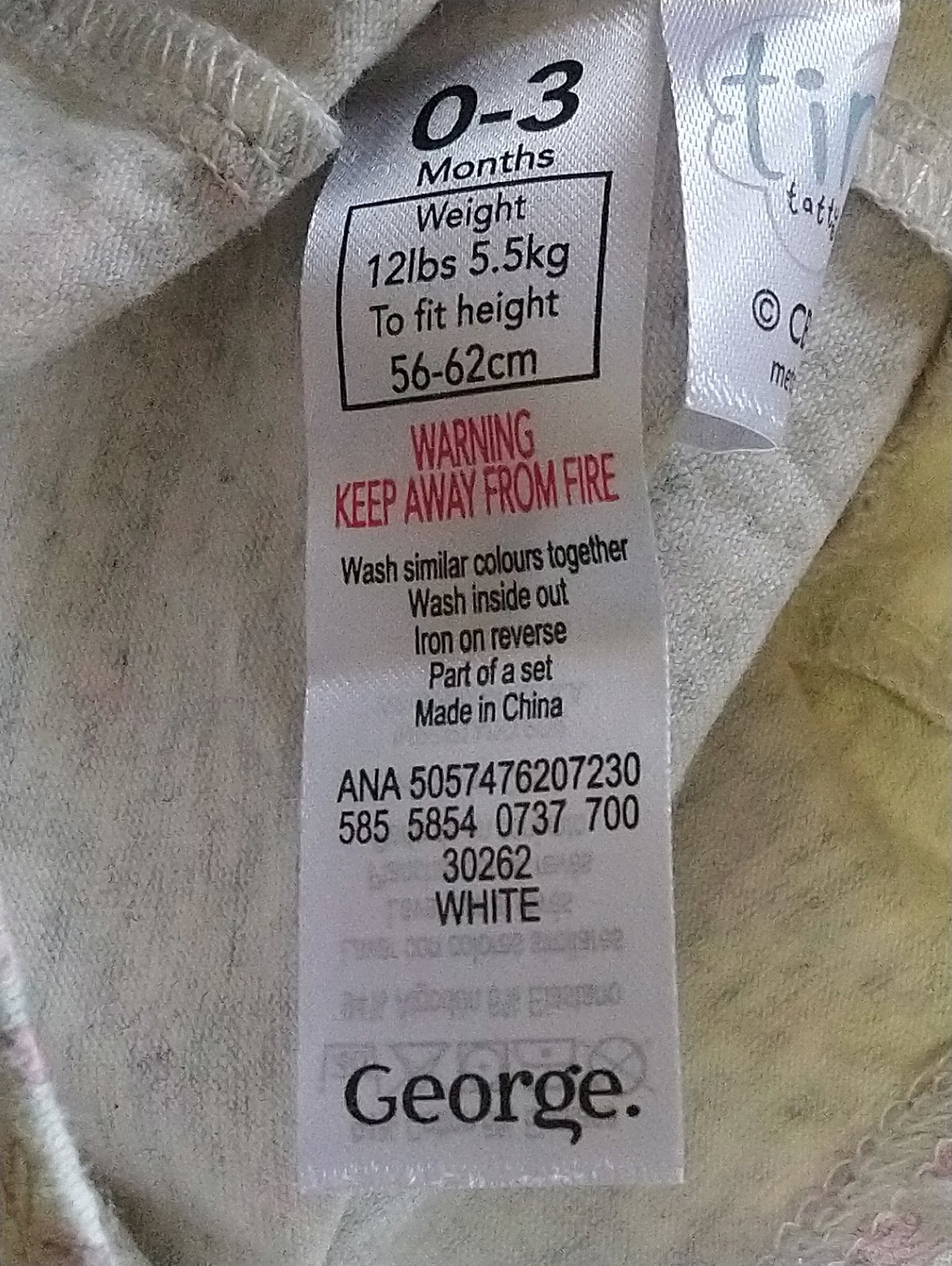 uvádzaná veľkosť na štítku 0-3 mesiace, 56-62 cm,