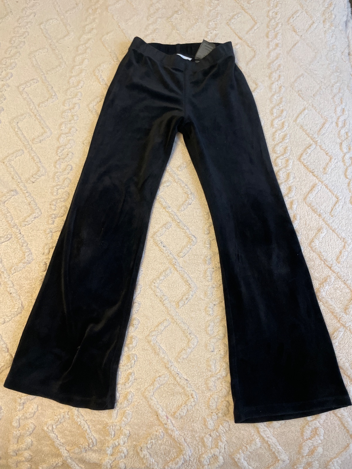Písaná veľkosť 146, ale podľa mna už aj na 140. Elasticky zamat, super pohodlne, veľmi pekný stav. Len pár krát oblečené. Pas 28cm. Dĺžka 86cm.