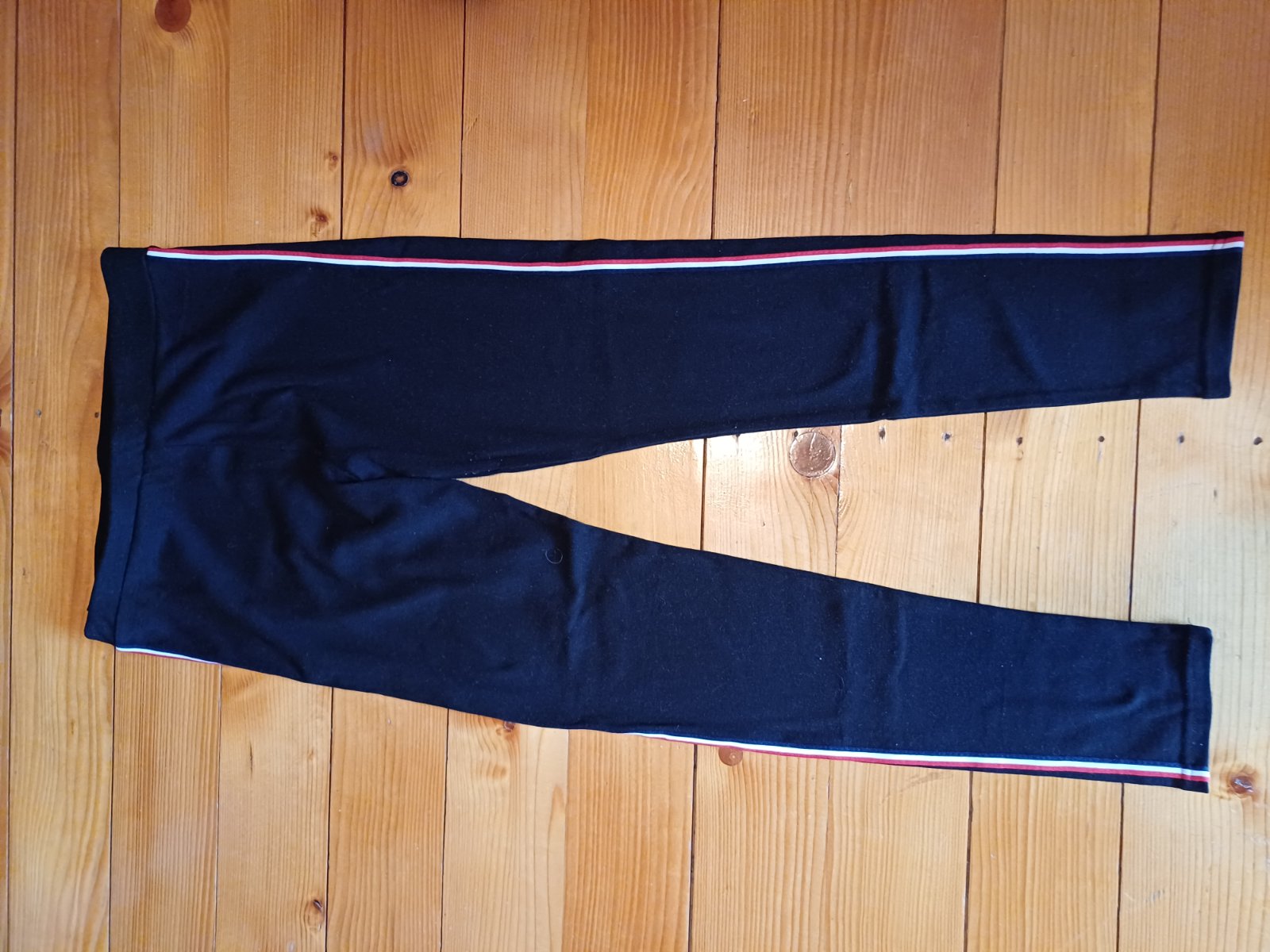 Popis tovaru: čierne7/8 legíny priesvitnými v sádkami na boku, s pohodlným pásom Stav: použité pár krát sú mi malé, nemajú žiadne vady ani poškodenia poslúžia na bežné nosenie, Materiál: 91 % polye...