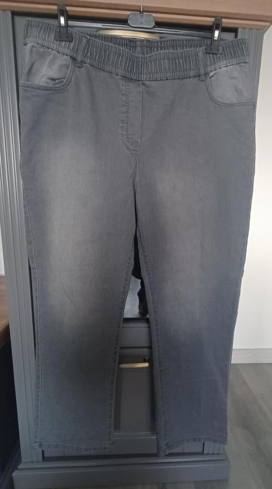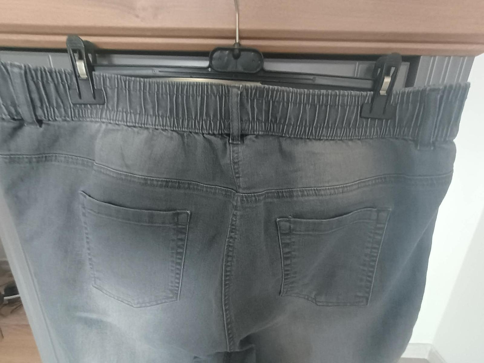 V páse na gumu, rozmer pása v kľude 2x52 cm, dlžka 105cm, predný sed 32 cm, zadný sed 46 cm, šírka dole 2x23 cm.