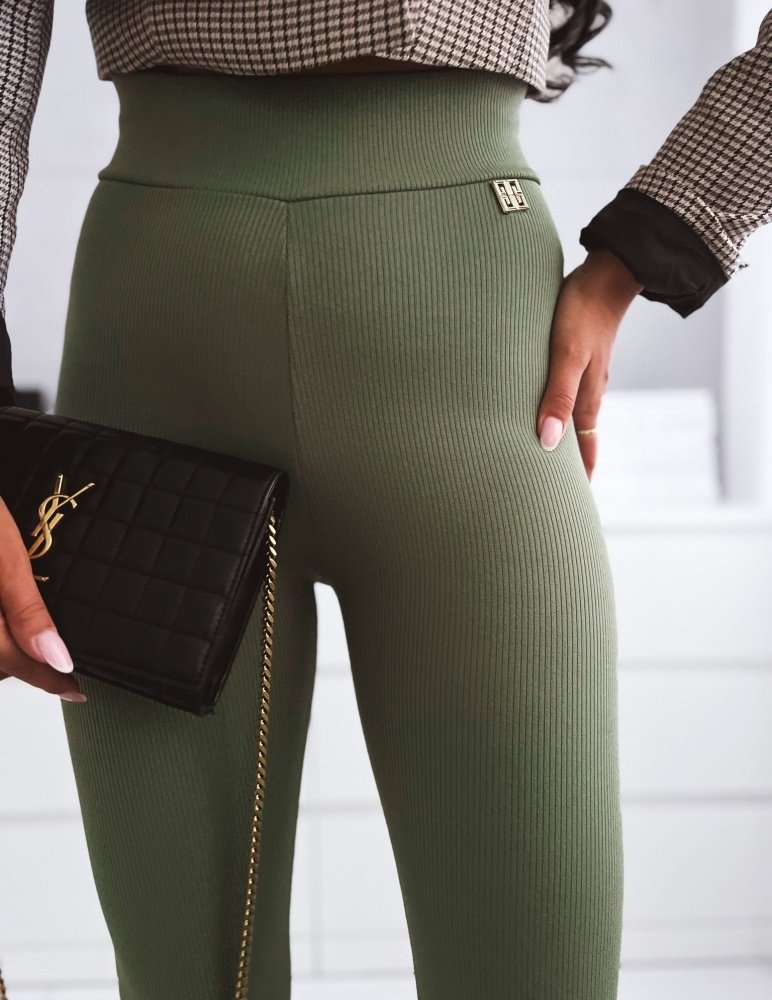 Olivové legíny Brenda sú veľmi pohodlné na každodenné nosenie. Legíny sú zateplené mikroflisom. Vďaka rebrovanej štruktúre sa prispôsobia k vašej postave a dodajú vám pohodlie aké potrebujete. Legíny ozvlaštňuje jemná štvorcová zlatá ozdoba.