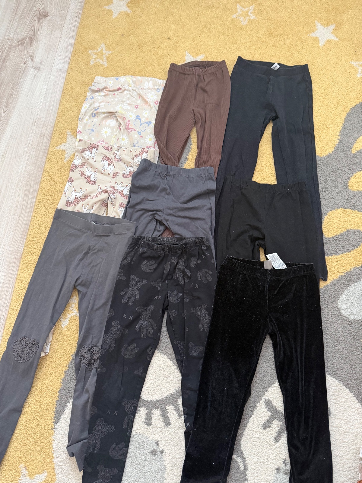9ks legín, rôzne značky, posledné trblietavé jemne zateplené,veľkosť 122/128