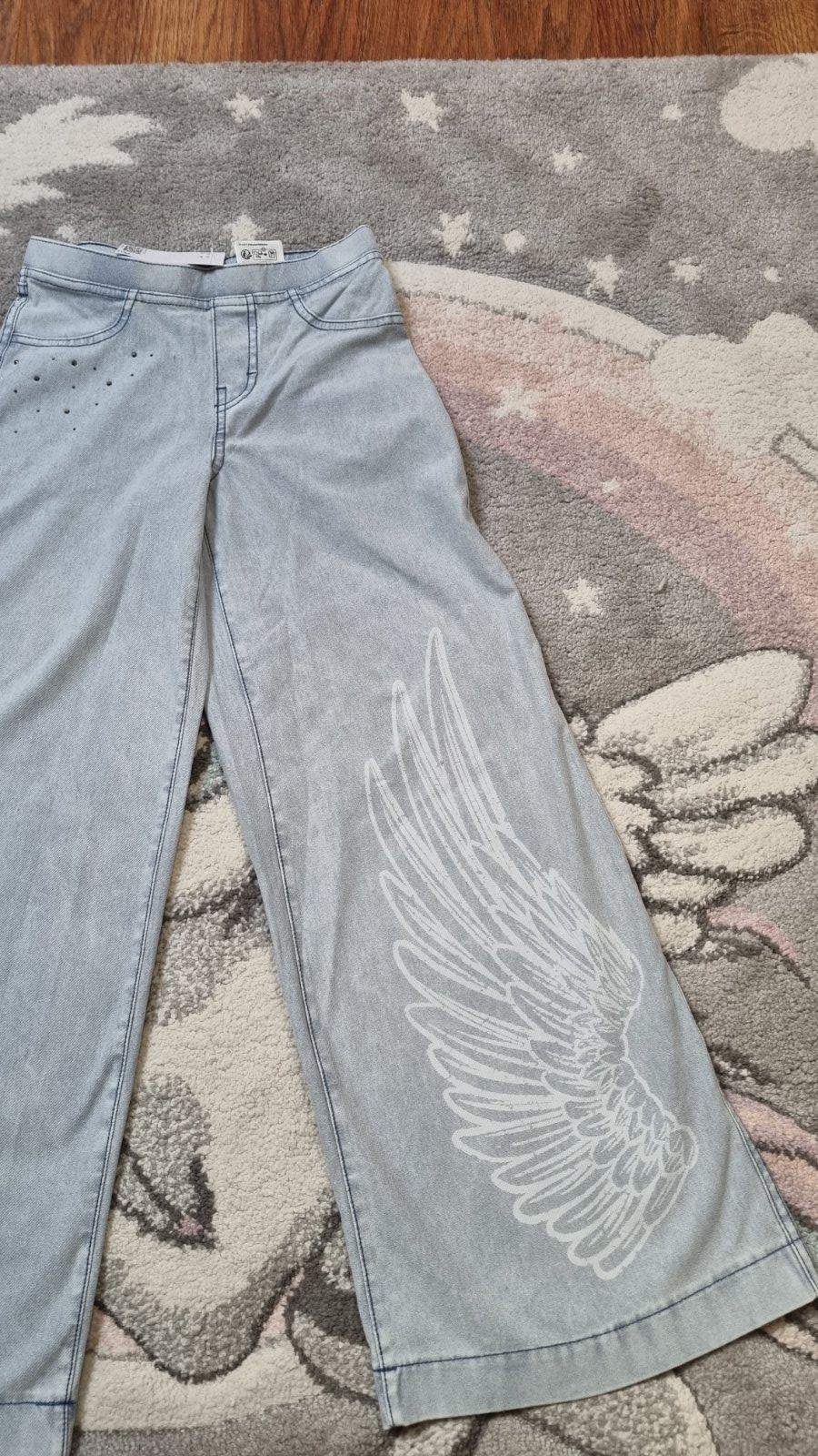 Pružný materiál,v páse guma, na kolene popísané od pera, zistila som pri fotení, zohľadnené v cene.