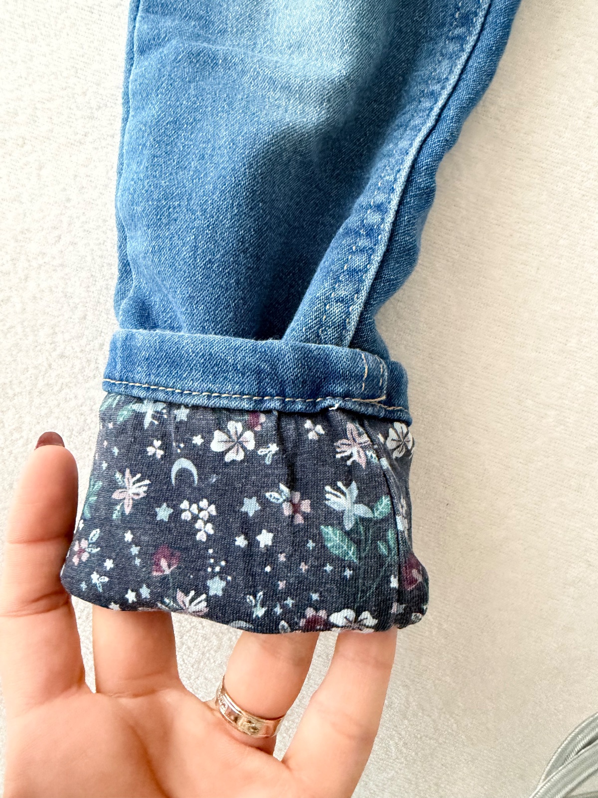 Zateplene. Nositelne od 122/128. Dole trocha zosuchane, vid.foto.
