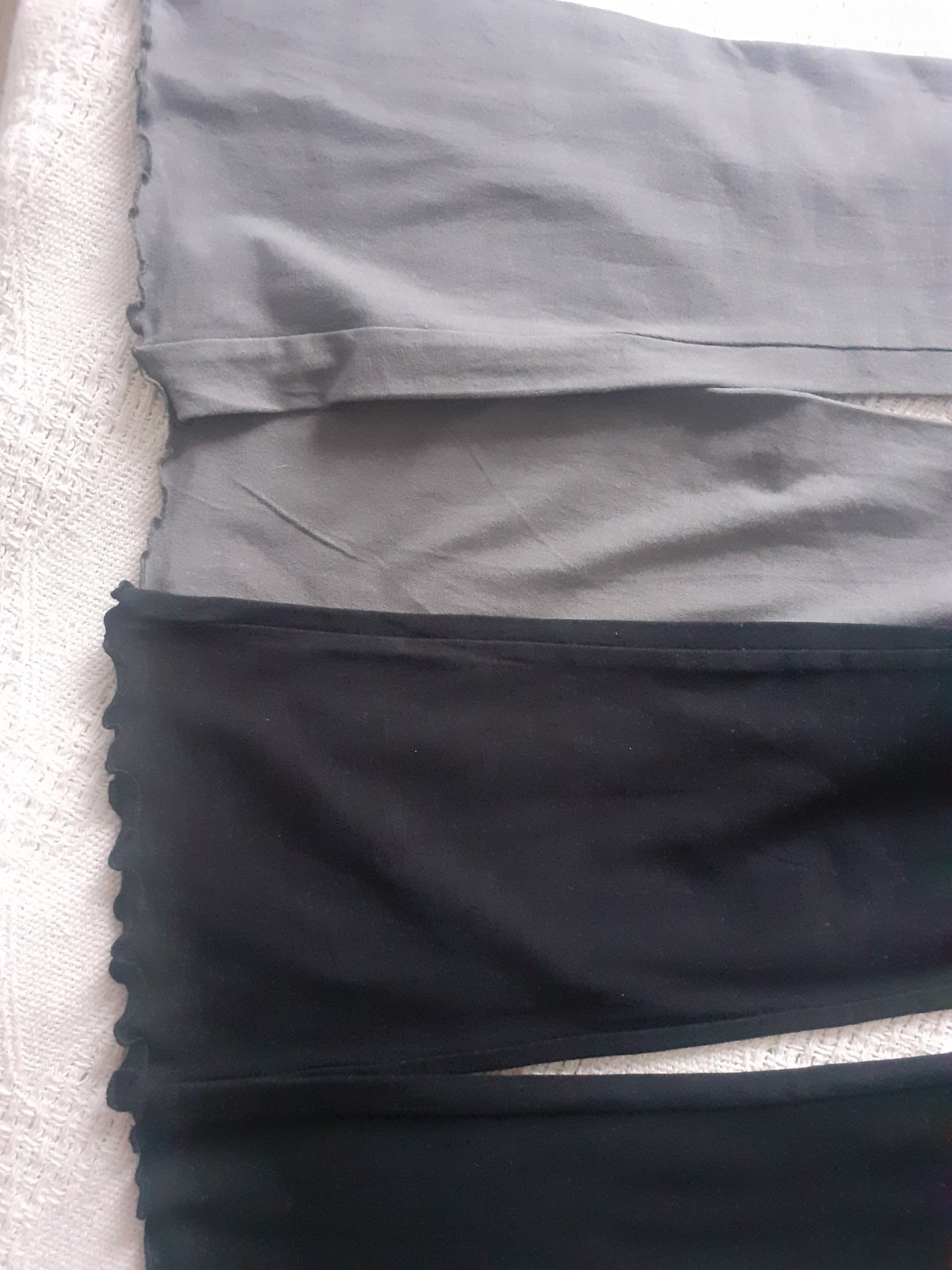 Tenšie legíny, minimálne nosené. Rozšírený strih, dole efektné "vlnkovanie".