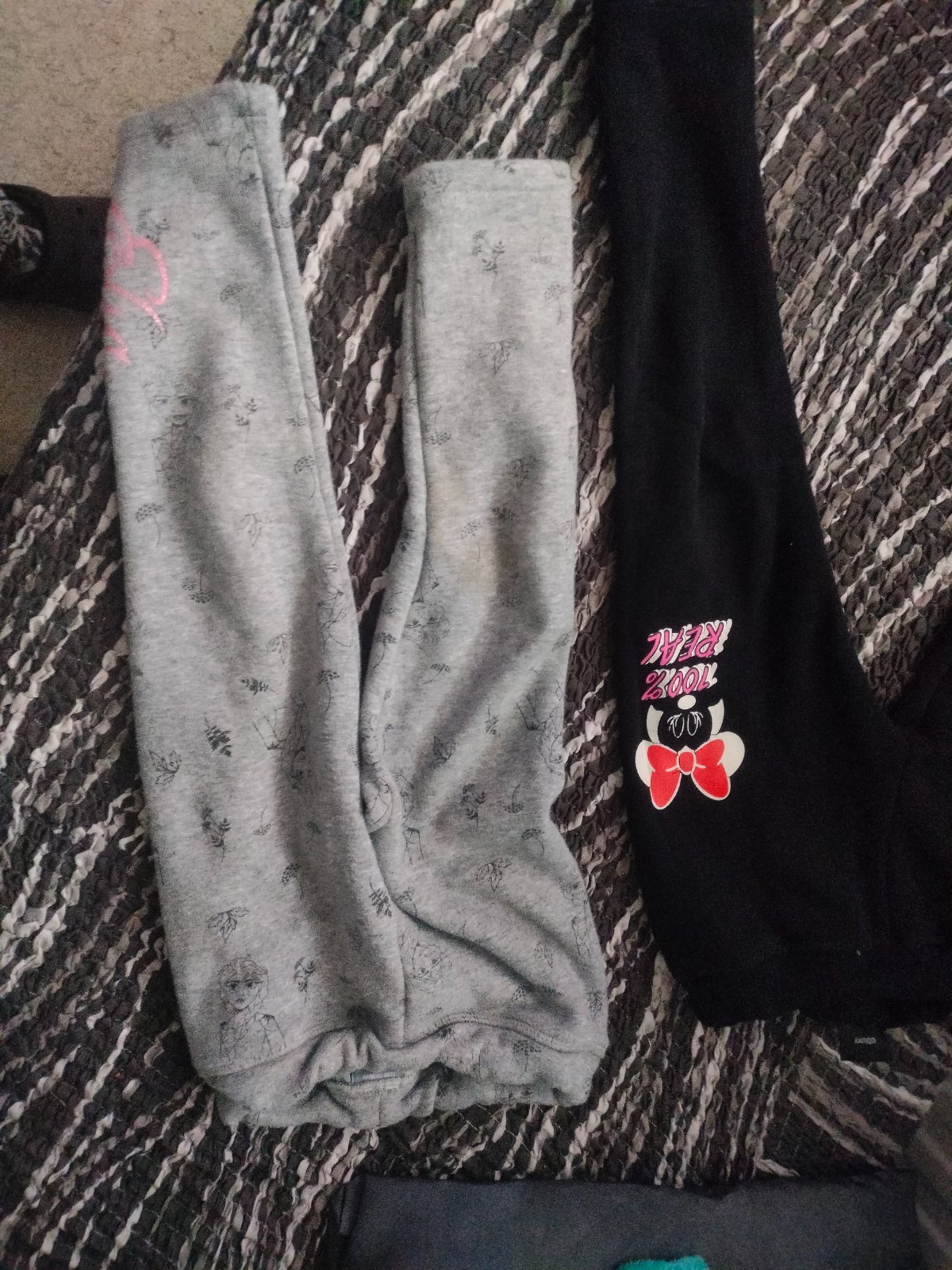 Nosené zateplené legíny veľ píše 110ale skôr to je 104lebo sú hrubšie a úzke a majú nízky sed cena za kus 5eur plus poštovné