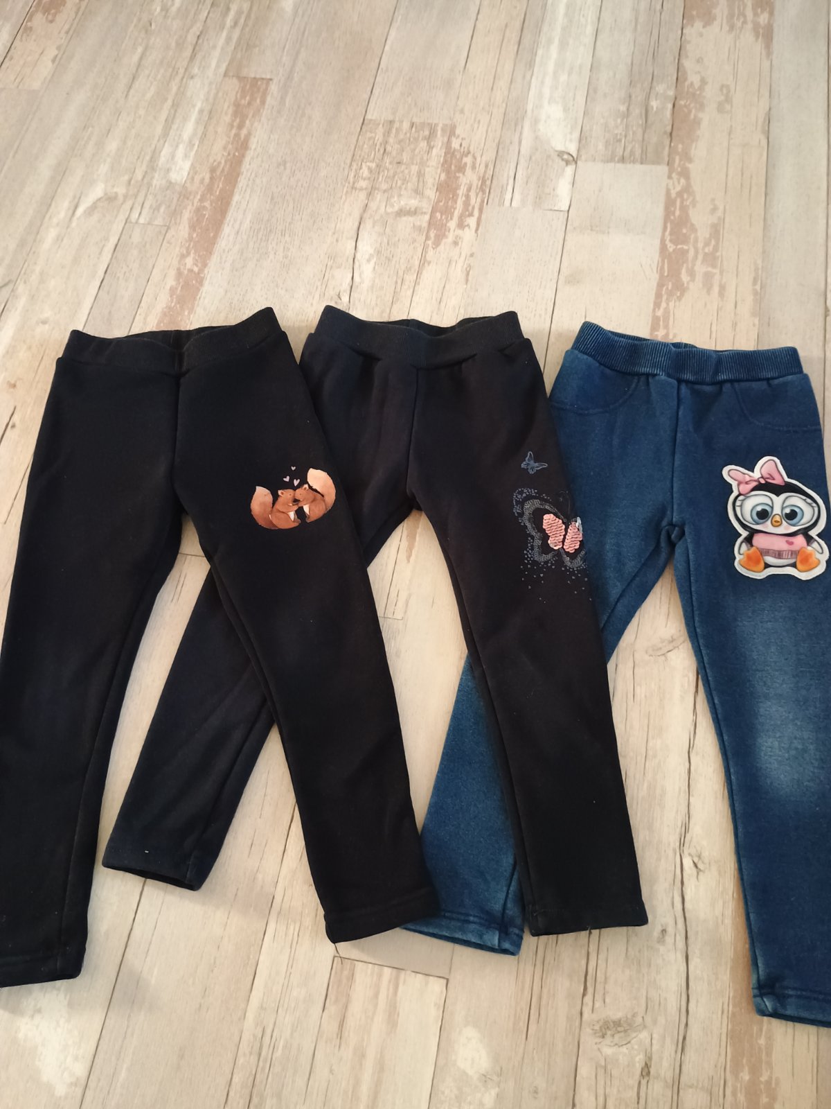 Zateplené legíny nosené no pekne. S motýlikom premeniaci obrázok suchnute kolienko čo slabucko vidno, legíny s tučniakom je nášivka a 🐿️ nazehlovacka jeden chvostik puknuty viď foto. Elastické mäkké poddajne