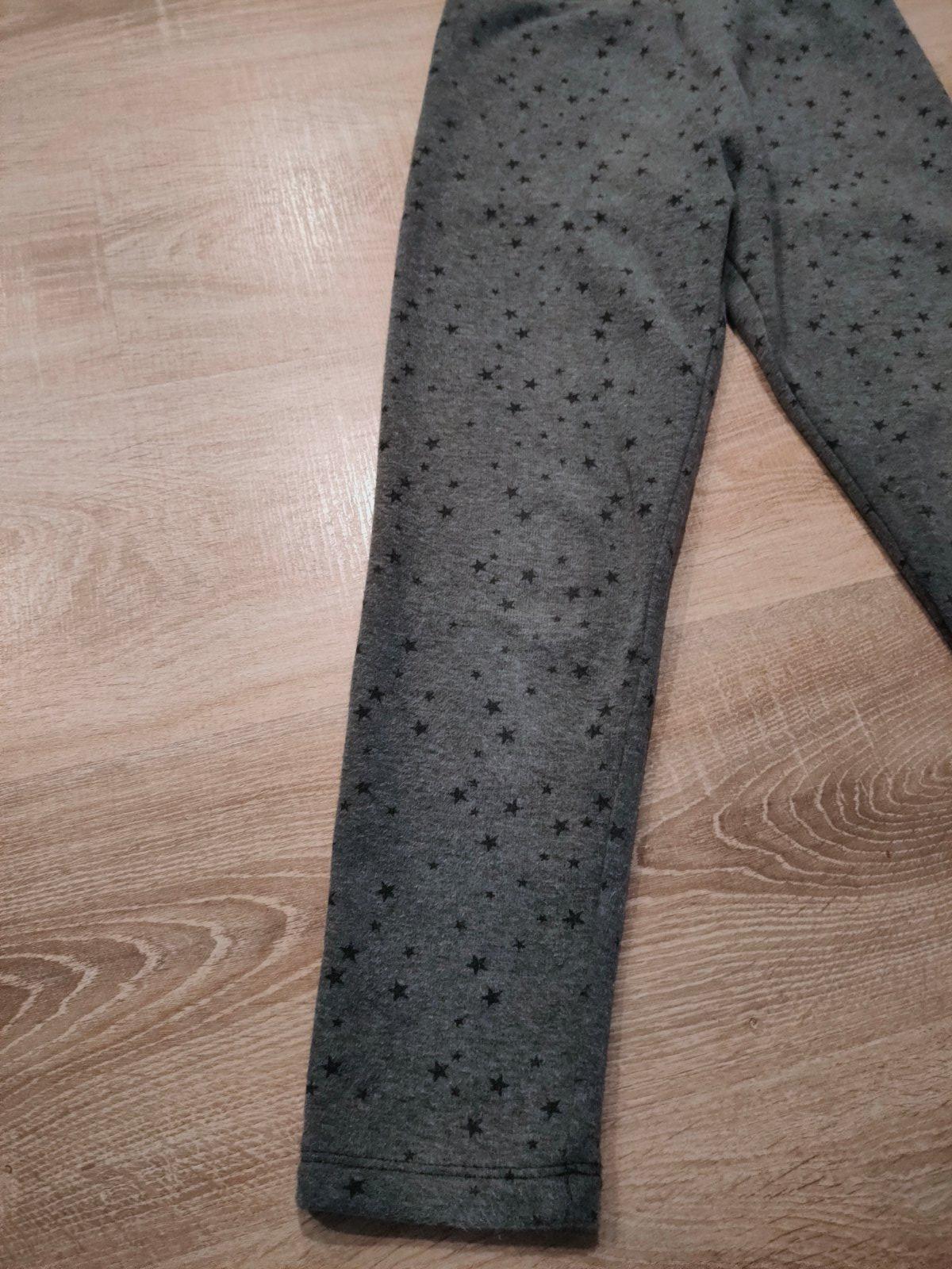 dievčenské elastické čierne legíny, v páse na gumu, príjemný kvalitný materiál, zloženie : 95 % bavlna, 5 % elastan, stav: výborný, málo nosený, značka: Here & there, C&A uvádzaná veľkosť na štítku...
