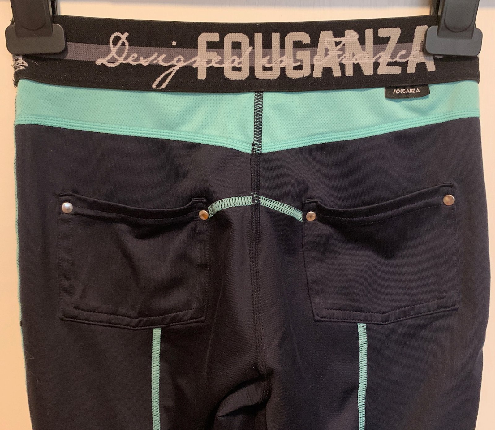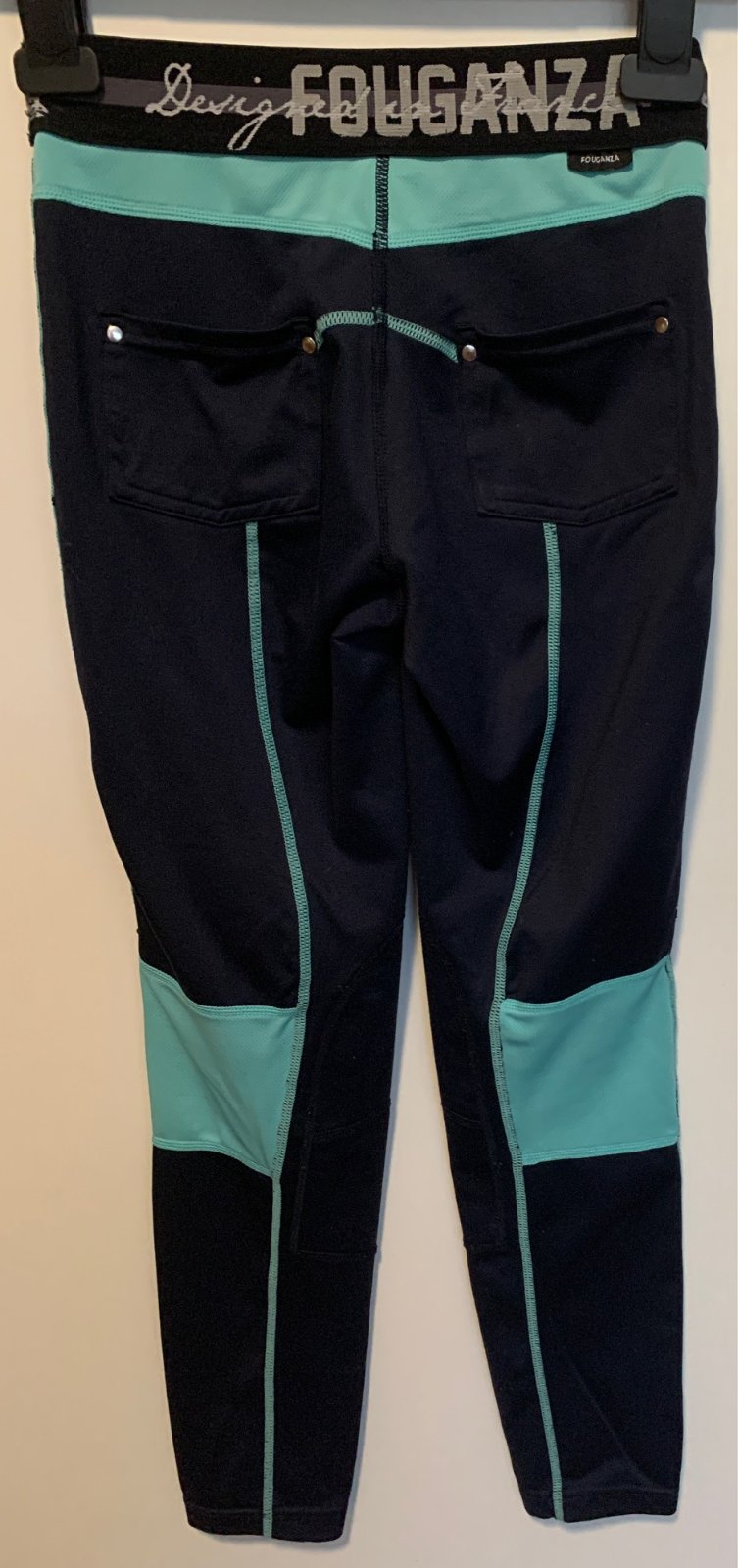 Fouganza Detské jazdecké legíny tmavomodro-tyrkyso