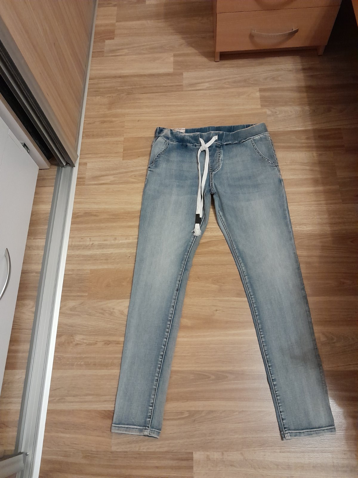 Ponúkam veľmi pohodlné rifle ešte s vysačkou veľkosti S ale sadnú aj na M. Sú kupované v butiku. Nenosené.