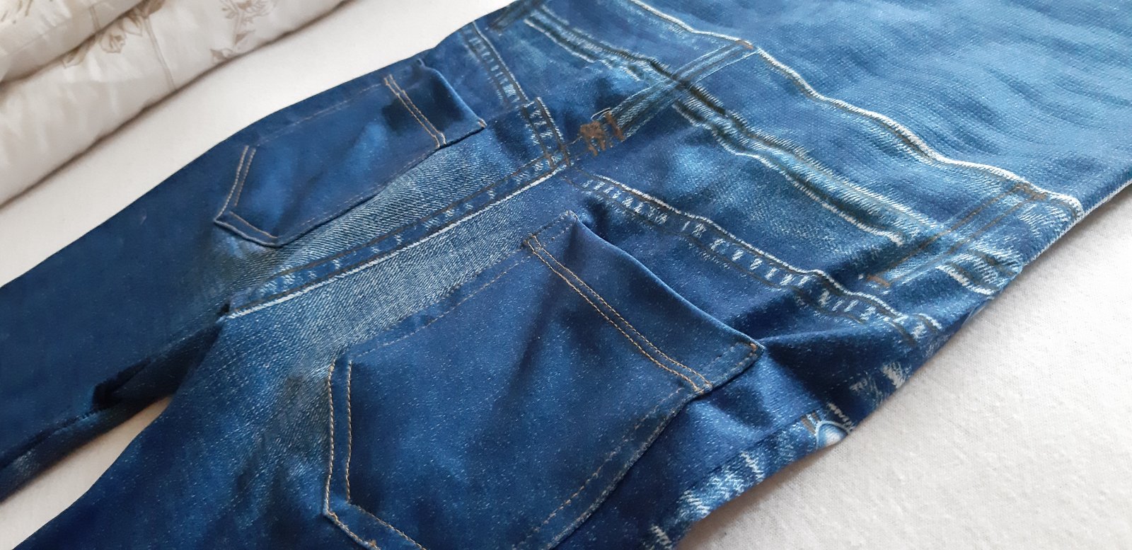 Zoštihľujúce slim legíny s riflovým vzorom a reálnymi vreckami, 1-krát oblečené, ako nové.