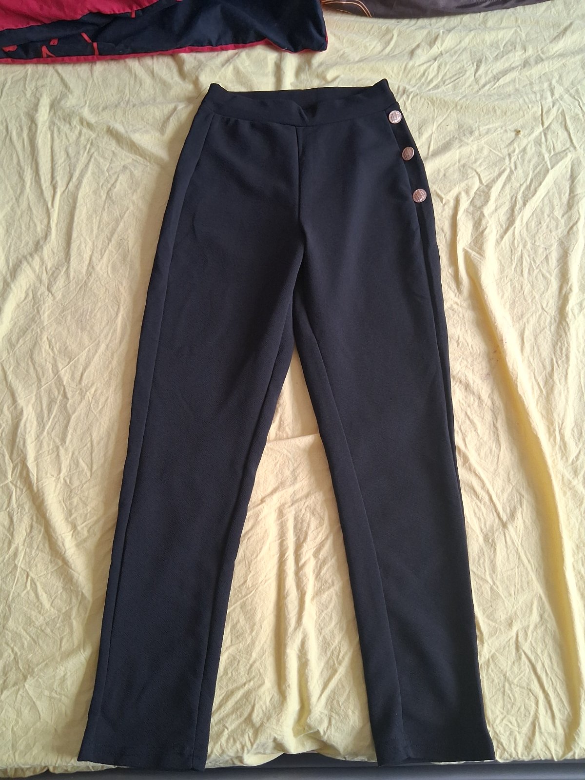 Perfektne strihane jegginsy Guess vo velmi dobrom stave. Nosenie nie je vobec vidiet, len jemne suchnute kovove klipsy na zipse. Nosene boli velmi malo, su velkost S, ale realne S/M a boli mi troch...