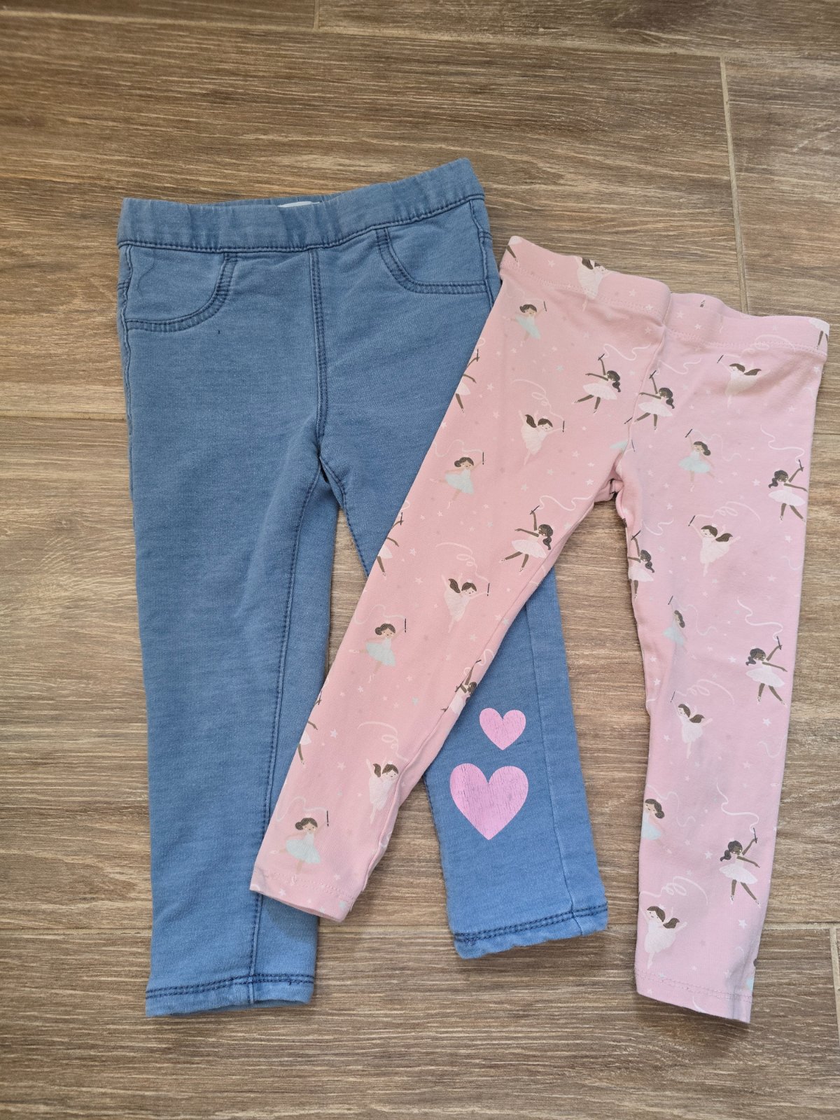 2x legíny 2-3 roky.Nezateplene.Nosene,bez fľakov a dier. Cena spolu 3€