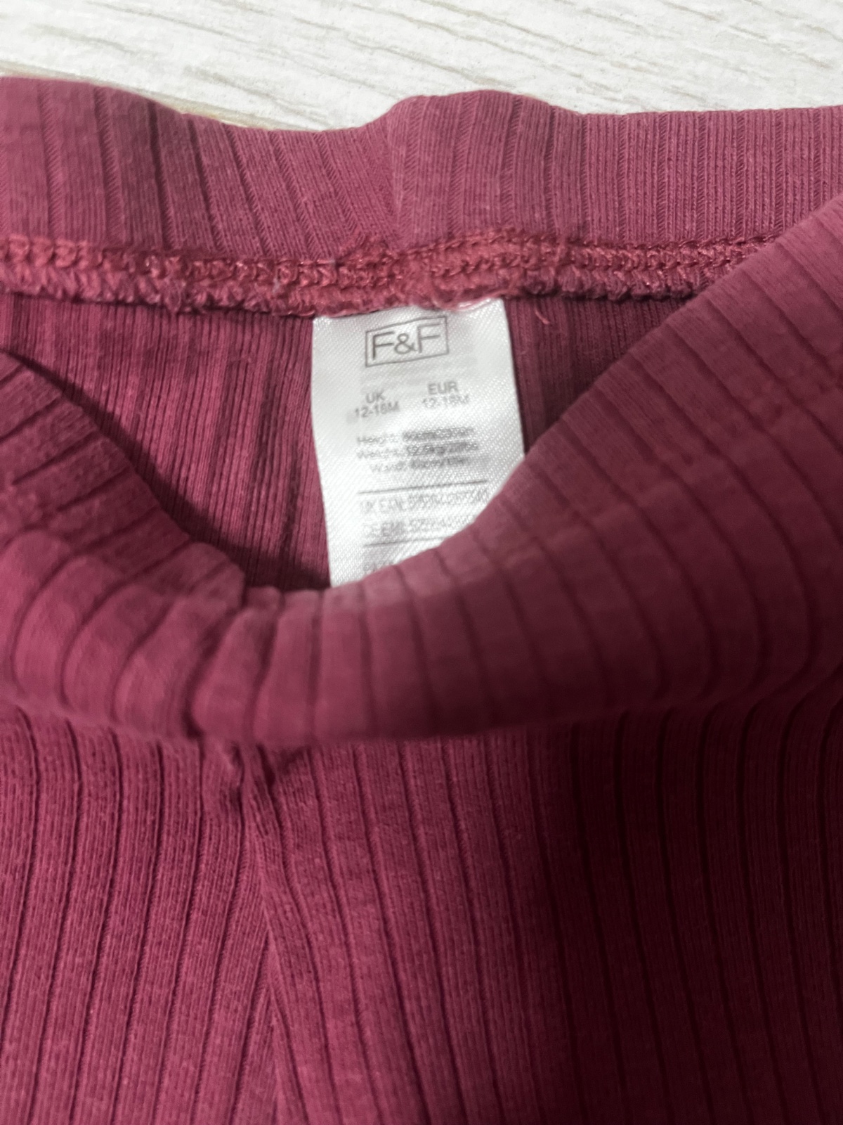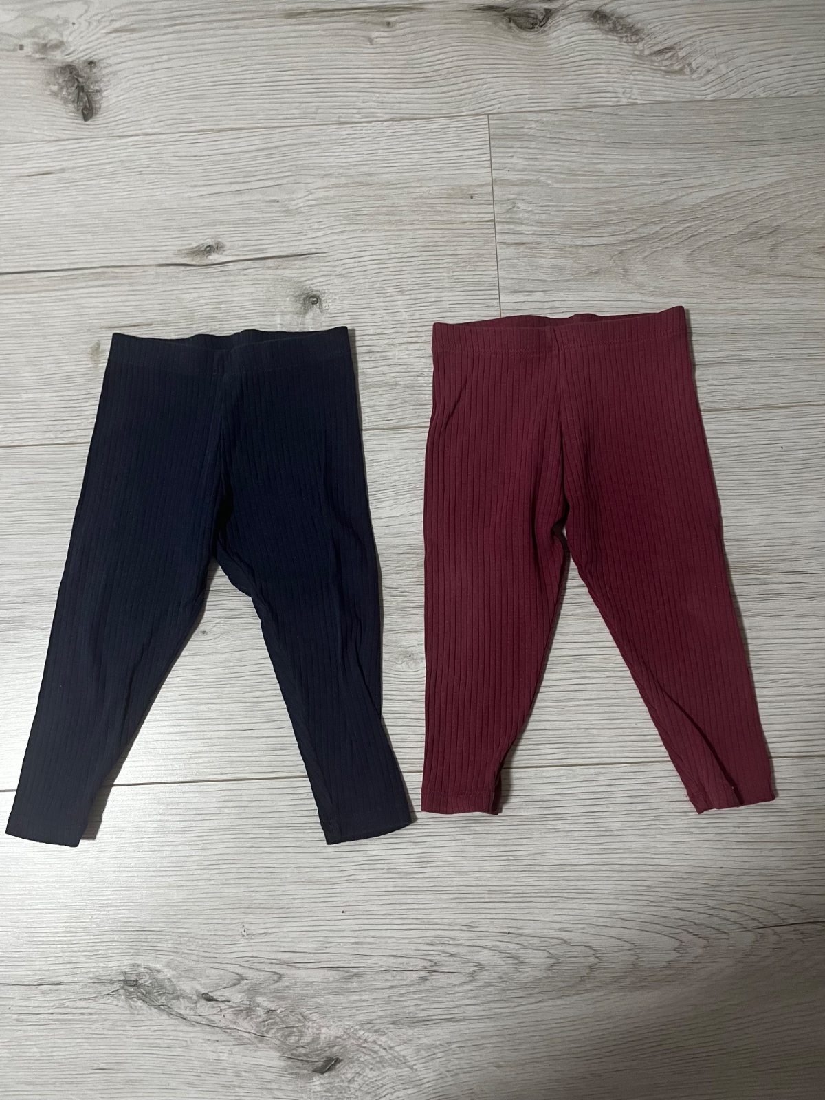 Predám dva kusy vrubkovanych legin (tmavomodrá/bordova) značky F&F, veľkosť: 86 (12-18 mesiacov).