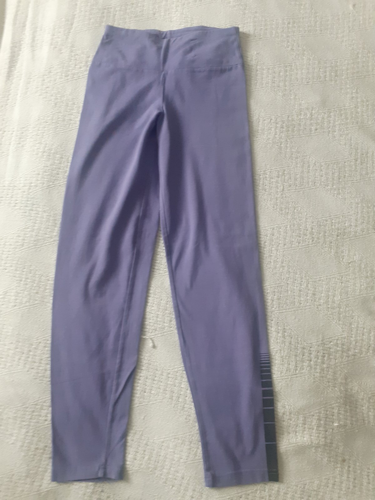 Kvalitné bavlnené legíny, vhodné na šport - vyšší pás. Na bokoch čierne "prúžky". Zloženie 94% bavlna, 6% elastan.