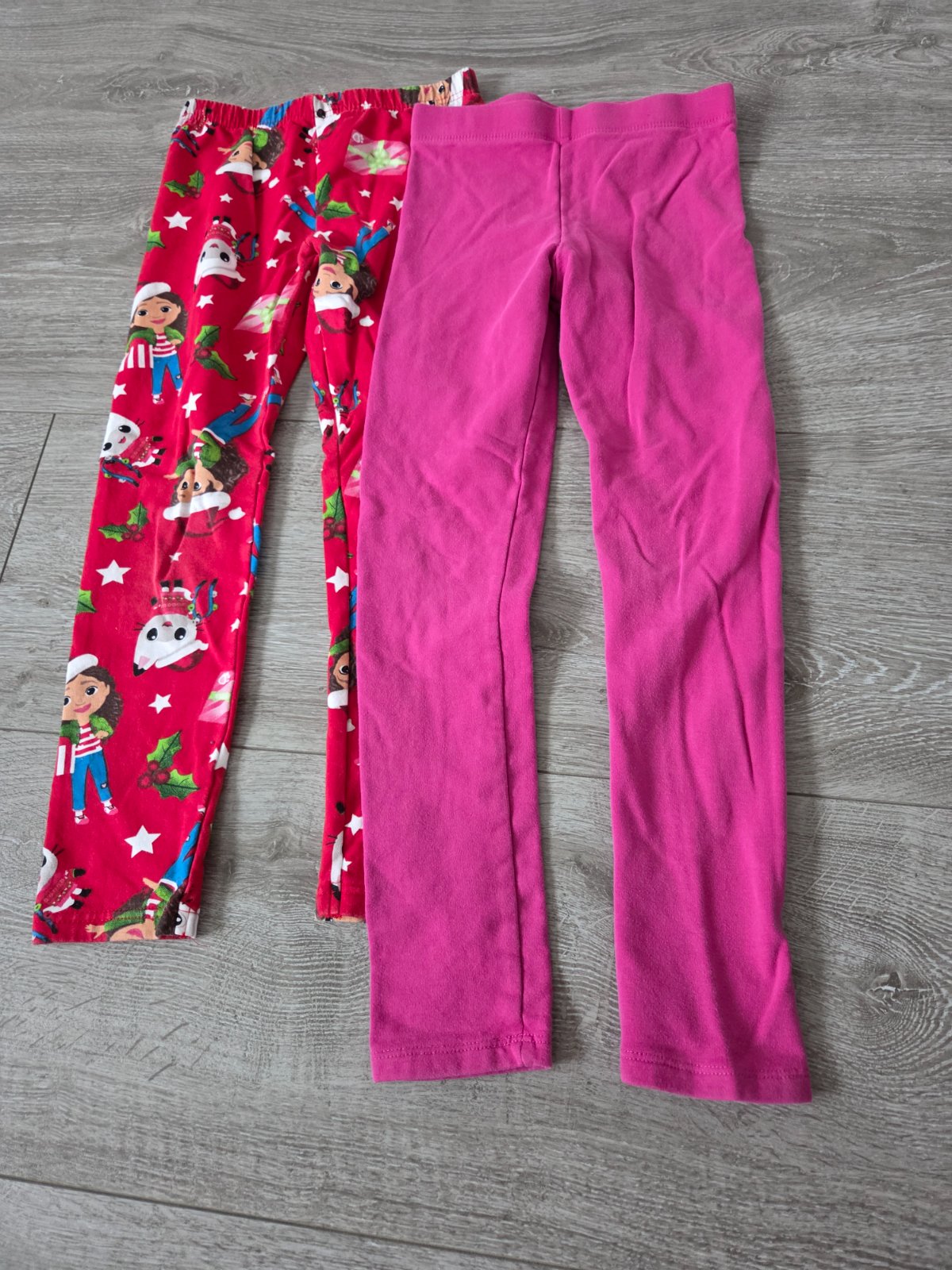 Predám 2 legíny, skôr hrubšie (nie zateplene, ale ani nie tenucke). Veľkosť rôzna, ale podľa dĺžky sedia na 134/140 obe. Bez poškodení, na ružových vzadu fliačky, vid foto. Cena za obe.
