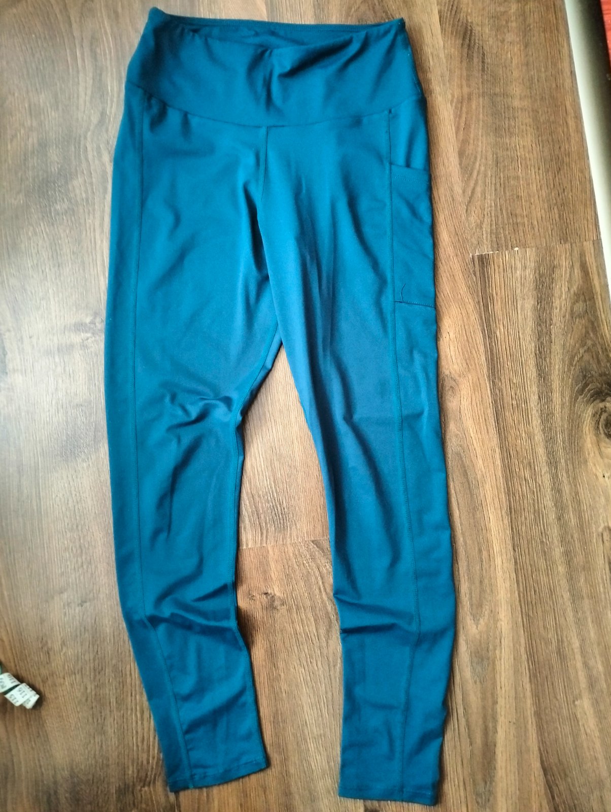 Veľkosť uvadzana S,ale podľa mňa XS,dĺžka 85 CM,pás v kľude 60 CM,jedno bočné vrecko na nohe.,90 %polyester,10% elastan.farba skôr petroelovo modrá.vyborny stav.velmi pekne