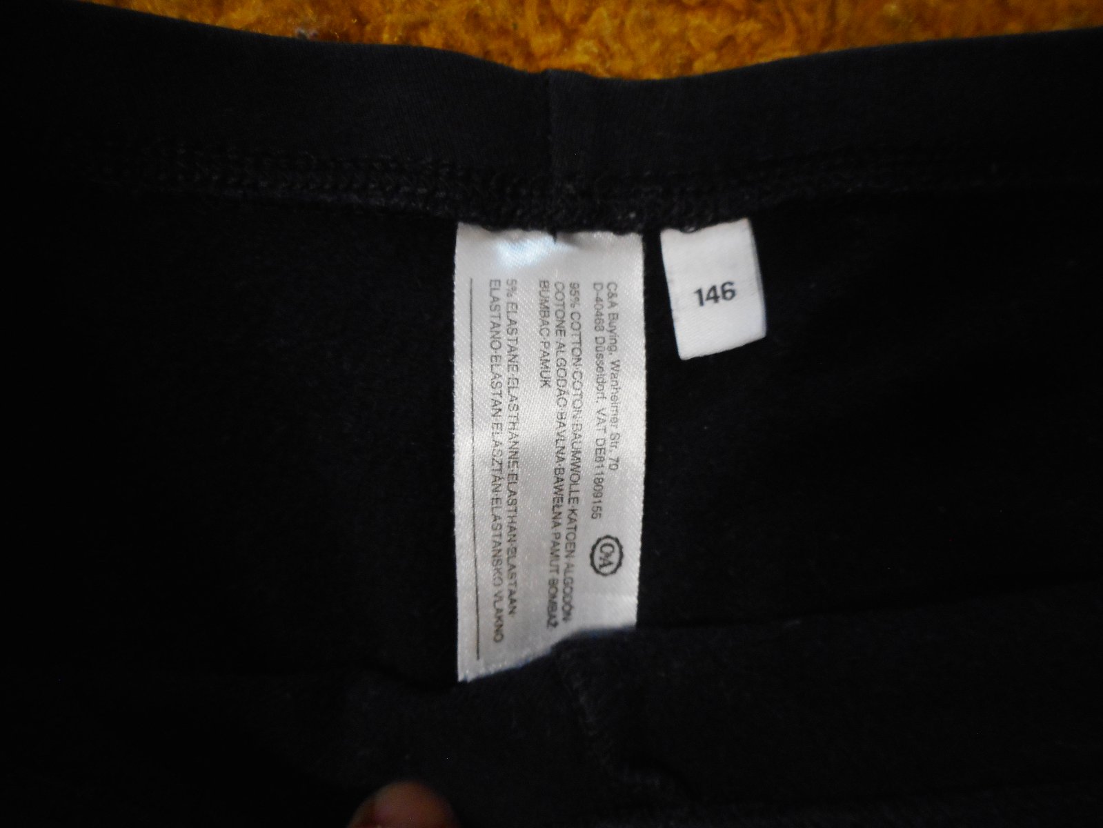 predám používané, nepoškodené zateplené dievčenské legíny čiernej farby zn. C&A veľkosť 146cm, gumičkový pás 29cm, dĺžka nohavice 75cm