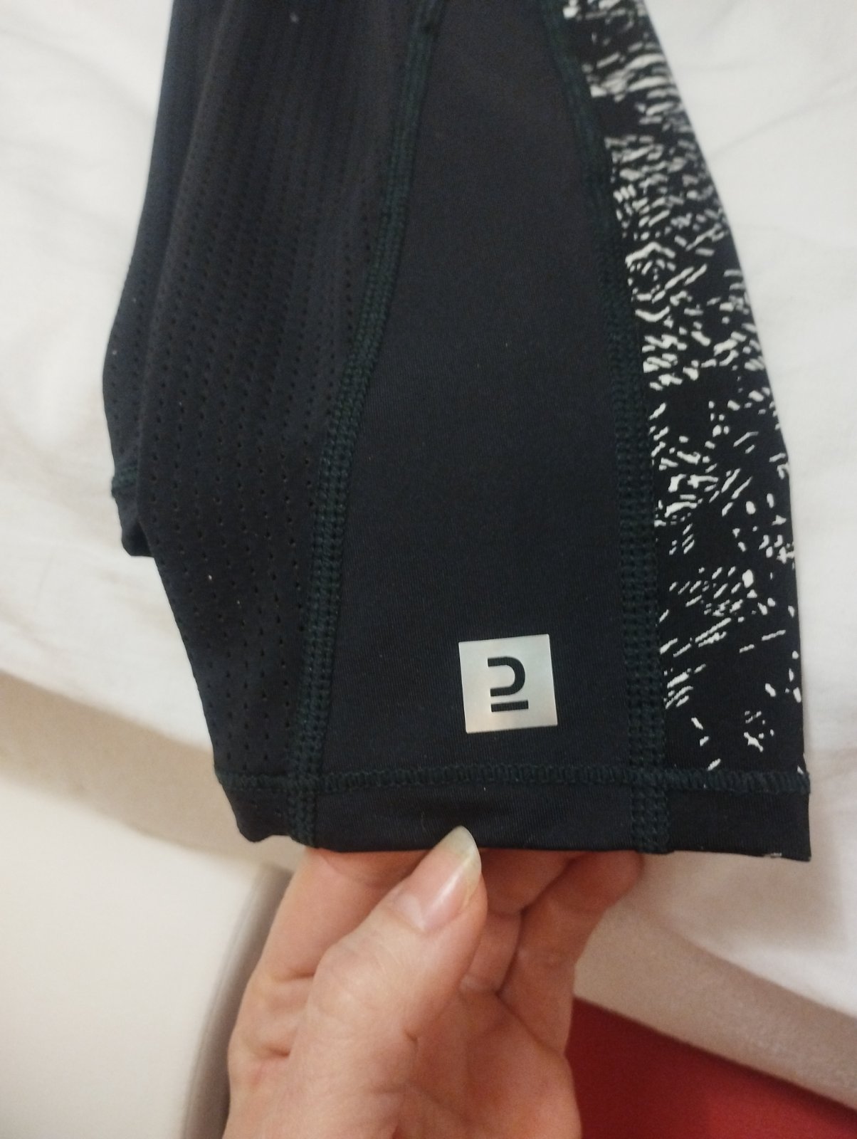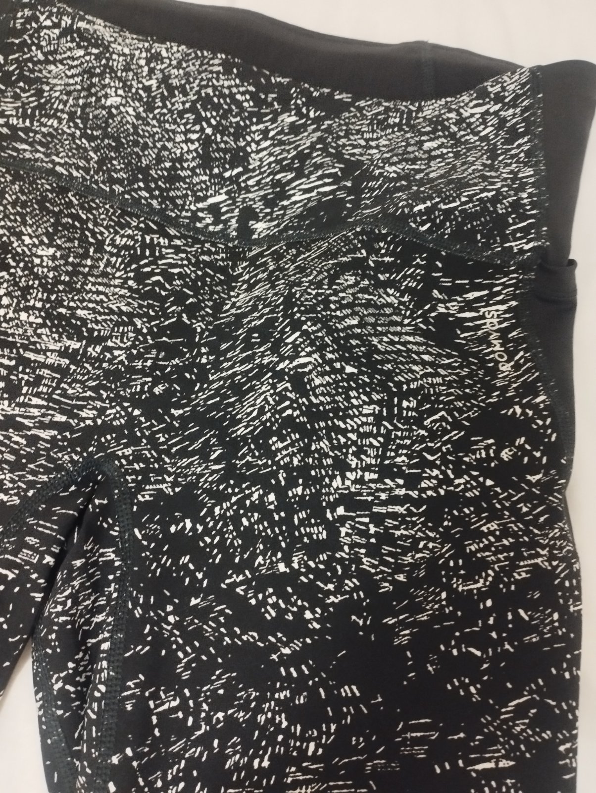 Nenosené legíny, ľahký, lesklý materiál,nad pásom a na lytkach sú dierky asi na vetranie.