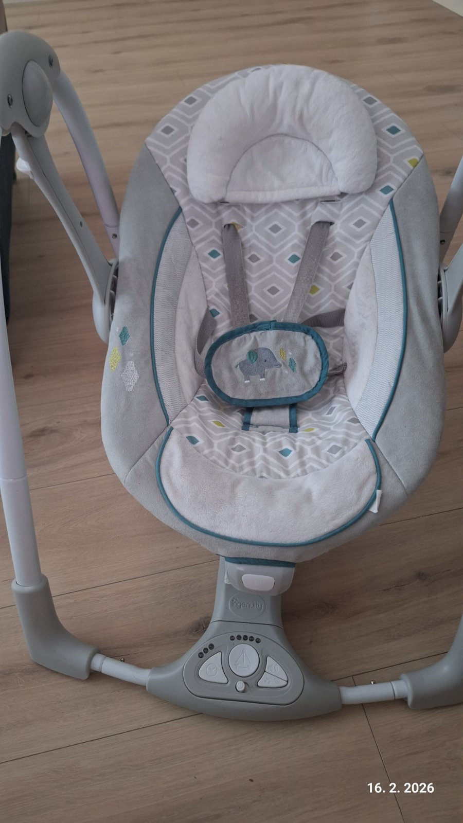 Kupovane nove, PC skoro 60€. Bez poskodeni plne funkcne. Krasne ziarive farby, vhodne rozmerovo aj pre vacsie deti, hrazda odnimatelna, potah tiez a da sa oprat. Kresielko jemne vibruje, je na bate...