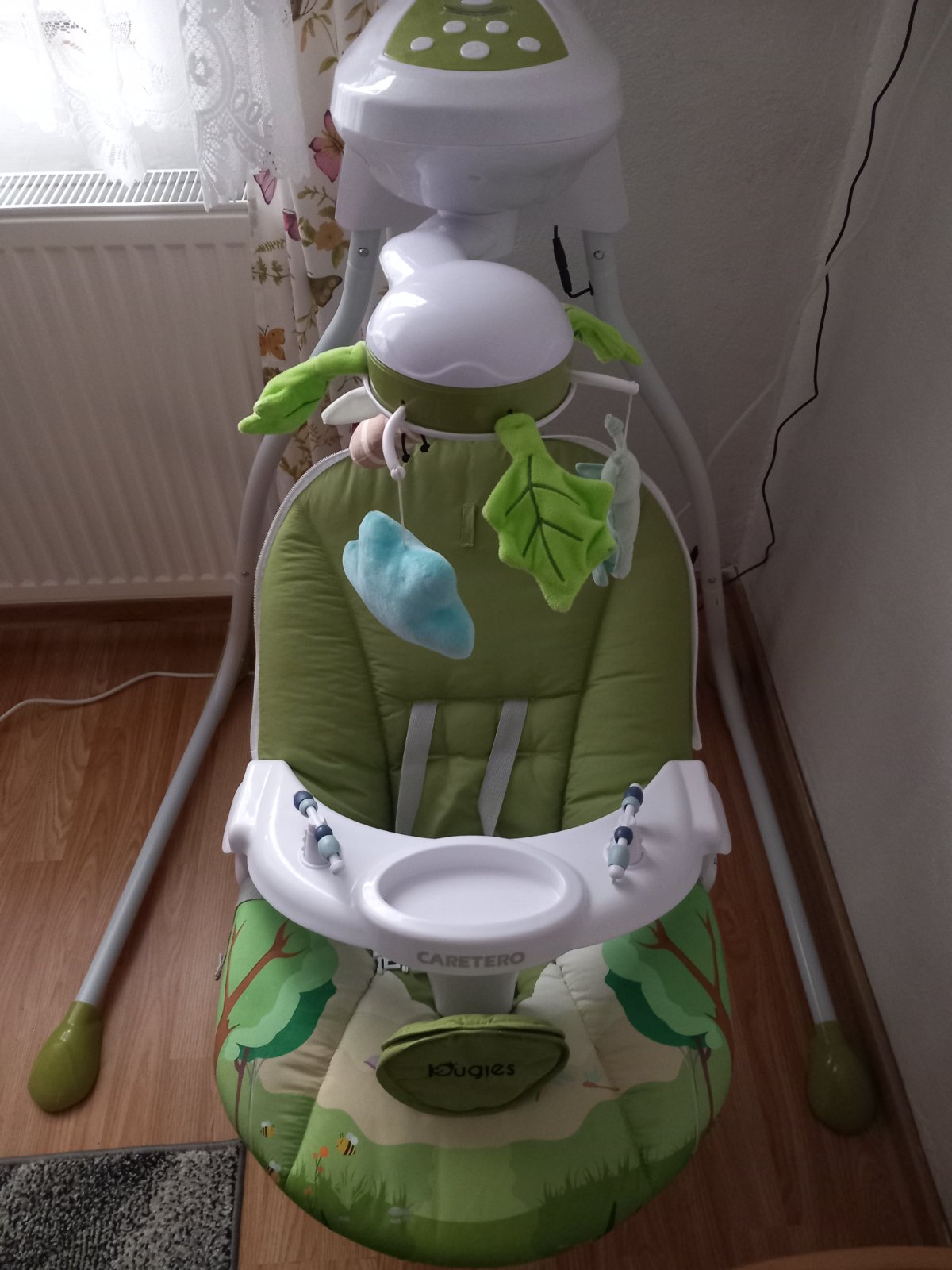 Otáčavý kolotoč s hračkami a svetlami s lesnou tematikou upúta pozornosť dieťaťa a podporuje rozvoj jeho motorických schopností. Odnímateľná vanička uľahčuje starostlivosť o dieťa. Vďaka vysokej kvalite materiálov a širokej škále funkcií je hojdačka Bugies ideálnou voľbou pre každé dieťa.