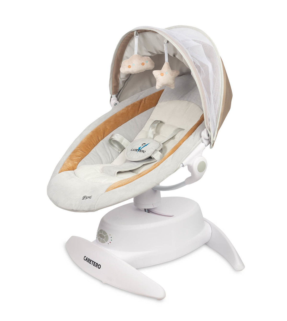 OPTI spája funkčnosť s moderným, elegantným dizajnom. Vybavená hrazdičkou so senzorickými hračkami, zapája a rozvíja zmysly dieťaťa. Ľahký, no stabilný rám s protišmykovými nožičkami z neho robí bezpečný a pohodlný produkt na rodinné výlety. Dodávané diaľkové ovládanie umožňuje pohodlné diaľkové ovládanie.