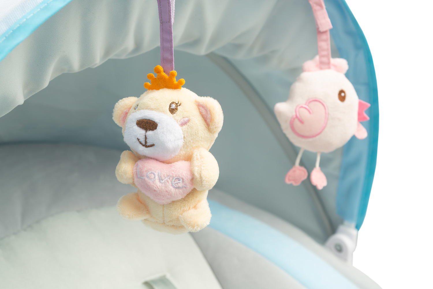 5-stupňová regulácia rýchlosti a vstavaný časovač vám umožní dokonale prispôsobiť zariadenie potrebám vášho dieťaťa. Rocker ponúka 11 melódií a tiež režimy so zvukmi vody a spevom vtákov, ktoré podporujú relaxáciu a uľahčujú zaspávanie.