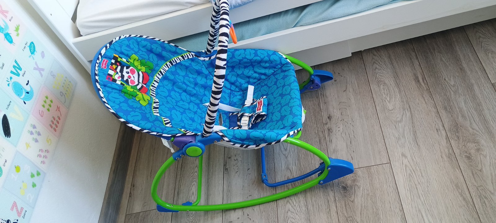 Darujem kresielko. Používané ale v dobrom stave. Neskúšala som, či ešte funguje vibrácia ale napriek tomu sa dá použiť na hojdanie alebo ako fixné kresielko. Hrazdička s hračkami nie je k dispozíci...