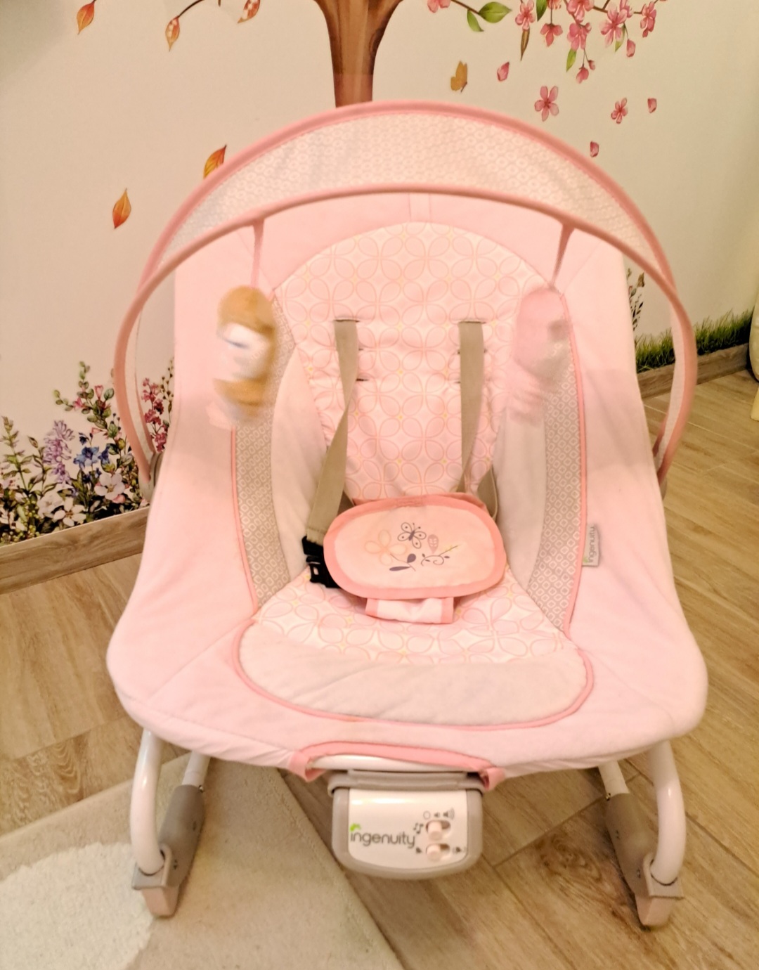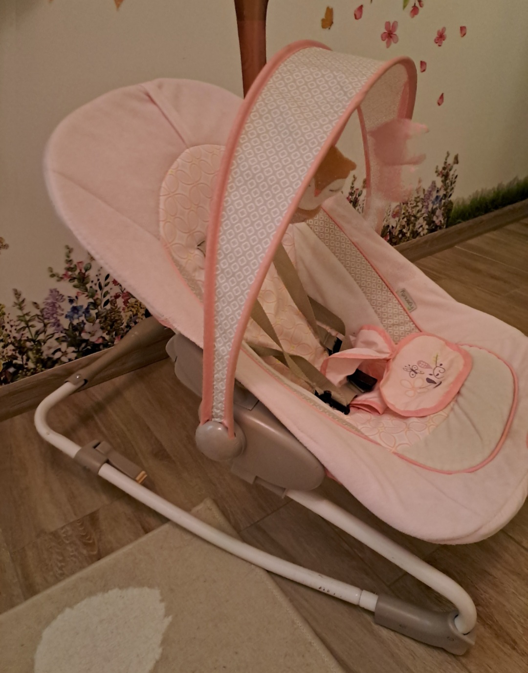 Kresielko v top stave, motylik hra hudbu, vybruje, super na prve prikrmy ked babatko este nesedi, da sa ho hojdat alebo zacvaknut do pevnej polohy. Vhodne od narodenia.