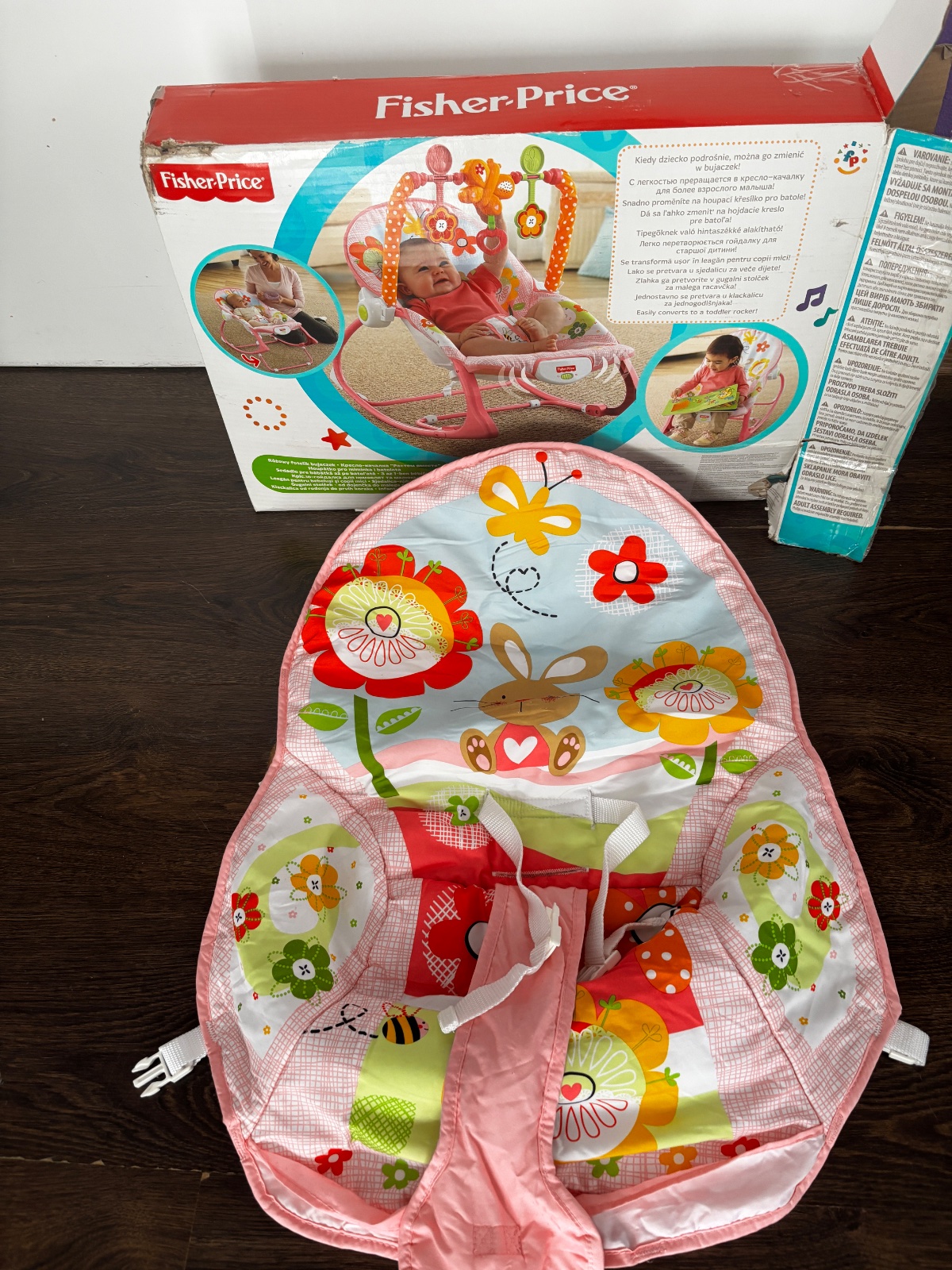 Kresielko v top stave, motylik hra hudbu, vybruje, super na prve prikrmy ked babatko este nesedi, da sa ho hojdat alebo zacvaknut do pevnej polohy. Vhodne od narodenia.