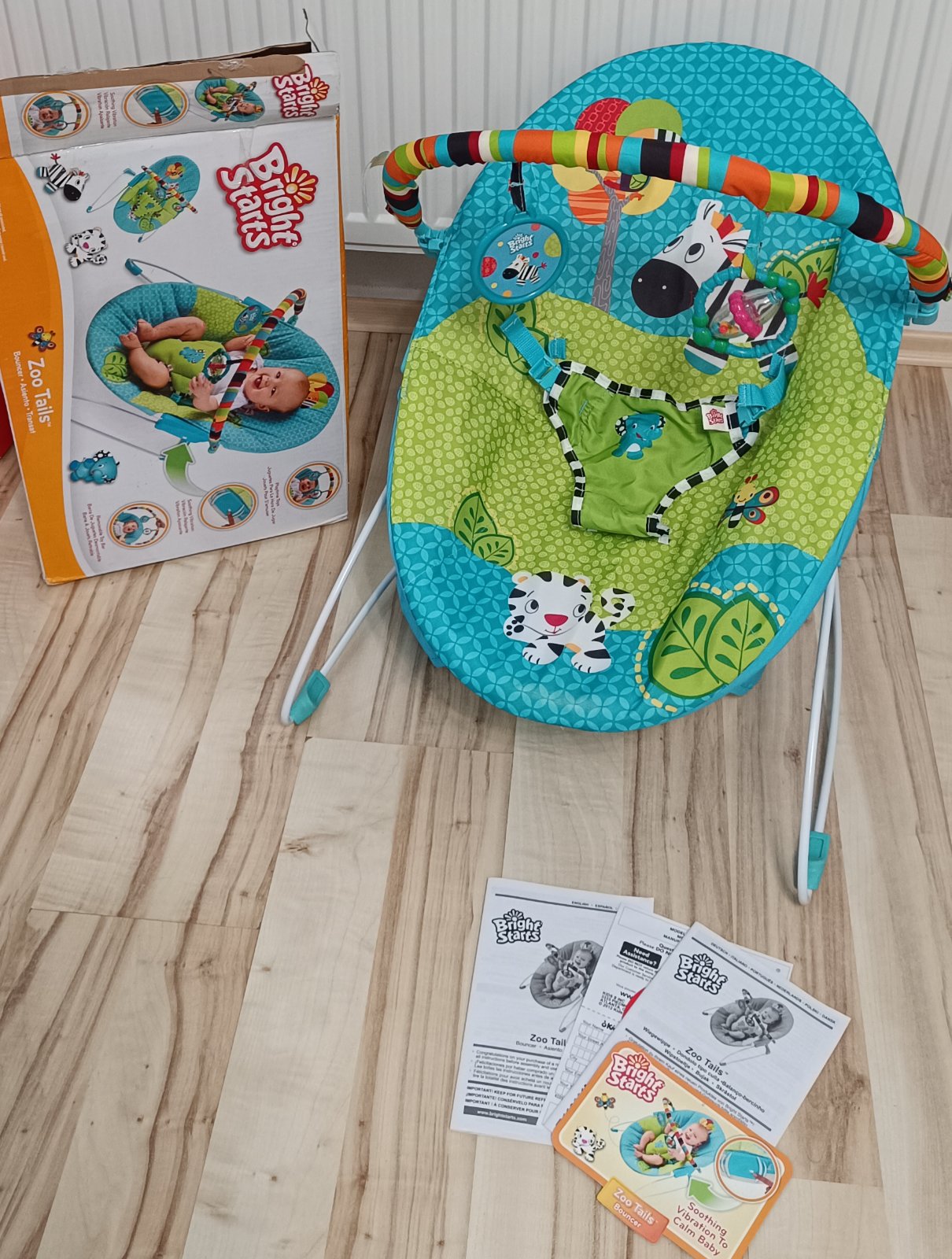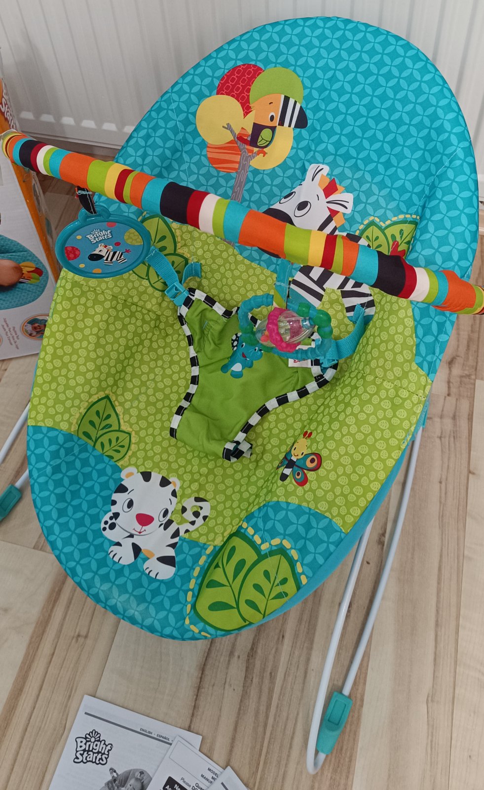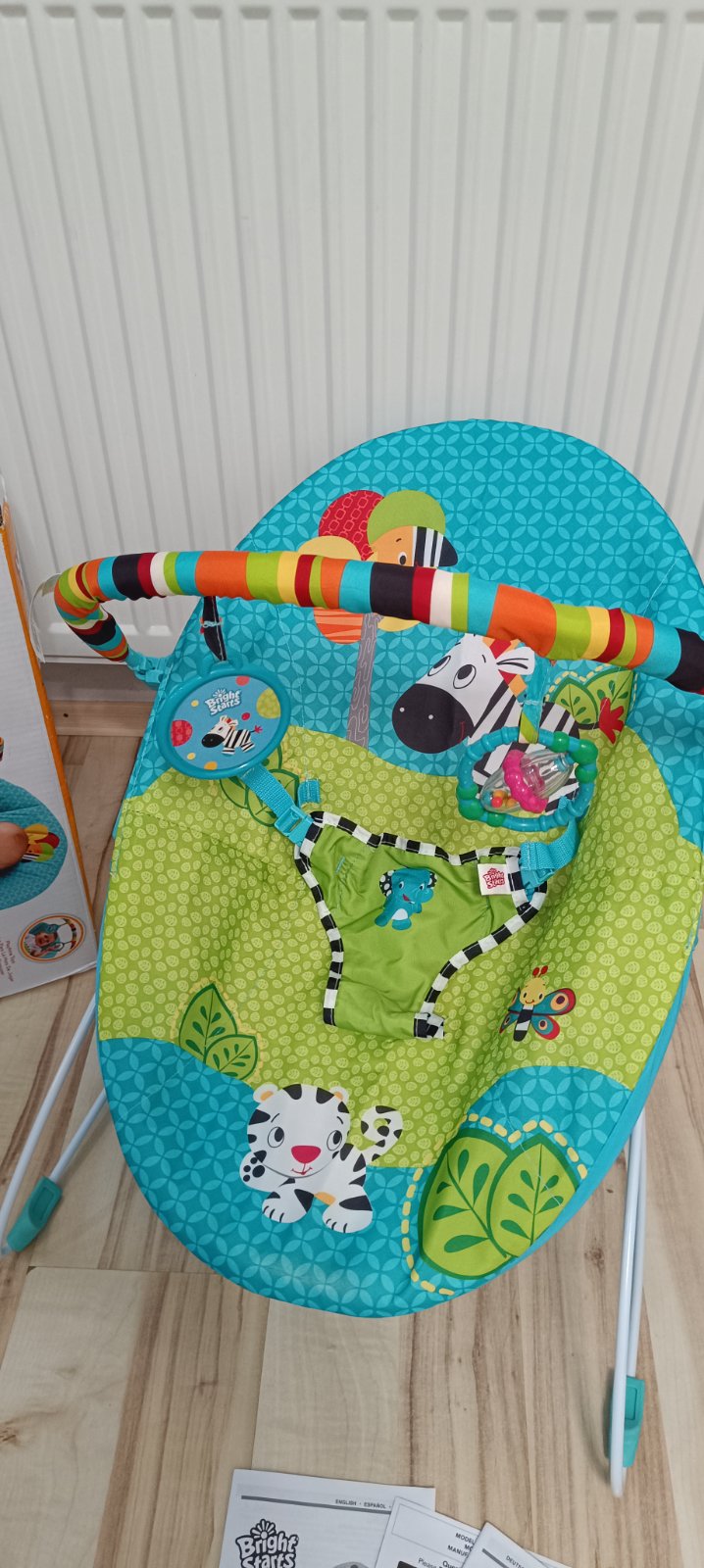 Krásne pestrofarebné a praktické vibračné hopsatko- lehátko Zn . Bright Starts vhodné pre chlapčeka aj dievčatko je vo výbornom stave ako nové pár x použité .