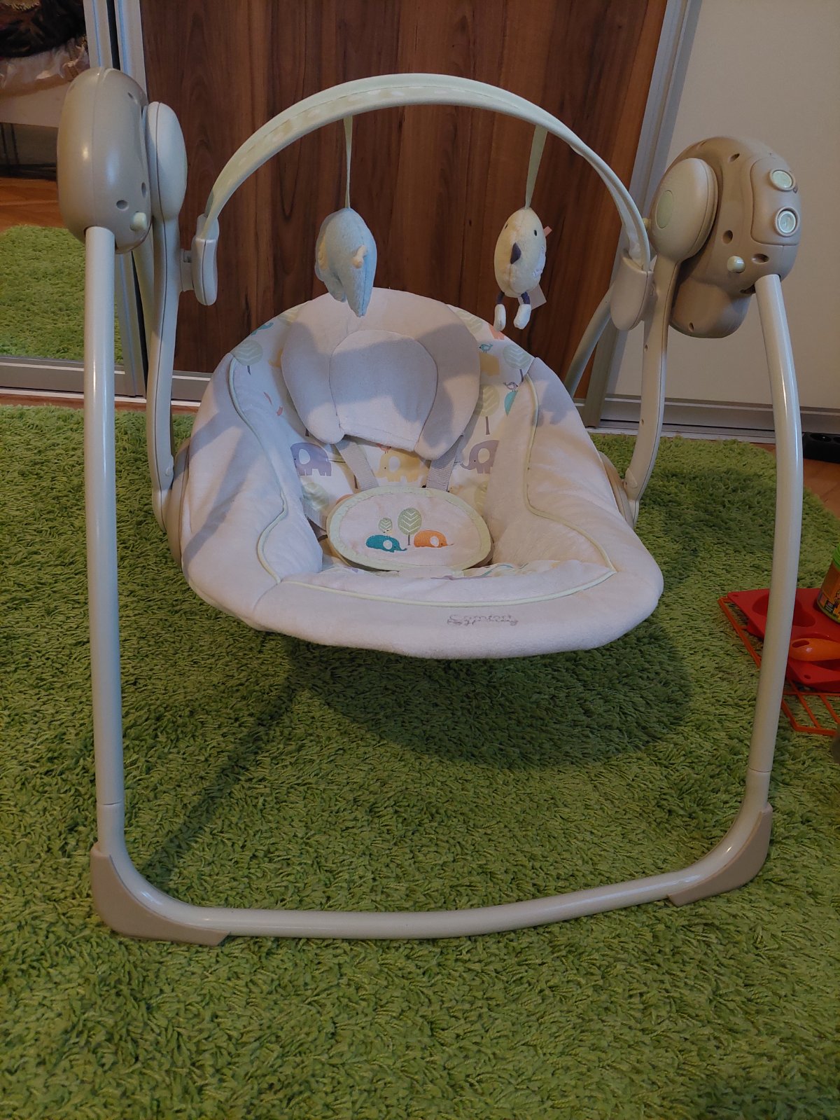 Predam prenosnu hojdacku/lezadlo Bright Starts Elepaloo vhodnu od narodenia. Je to skutocny "life saver" pri malych detoch. Kupovala som novu a vyuzila pri 2 detoch. Deti mi v nej spali, jedli, prizerali sa ked som varila ci upratovala. Hojdacka ma 6 rychlosti hojdania a 2 hlasitosti melodii s casovacom. Na hrazdicke su upevnene 2 zvieratka, kt. zaujmu pozornost a daju sa upevnit dalsie hracky. Samozrejmostou je bezpecnostny pas. Hojdacka je bez poskodeni, nerozoznate od novej. Mozny odber i v BB, LM.