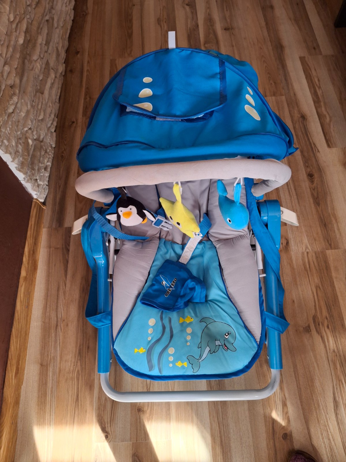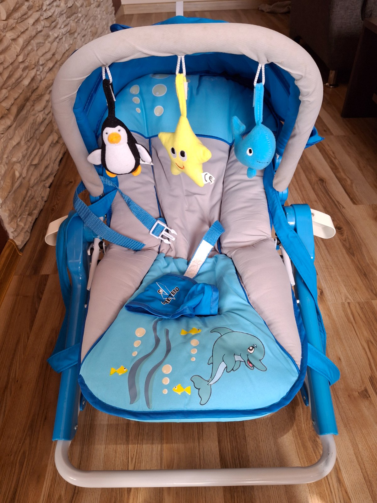 Predám hojdacie kresielko po 4 deťoch, má menšie známky používania , inak je bez chýb všetko na ňom funguje je aj na batérie alebo ja kábel jedine nebude k nemu ovládač ( neviem kde sa odložil pokú...