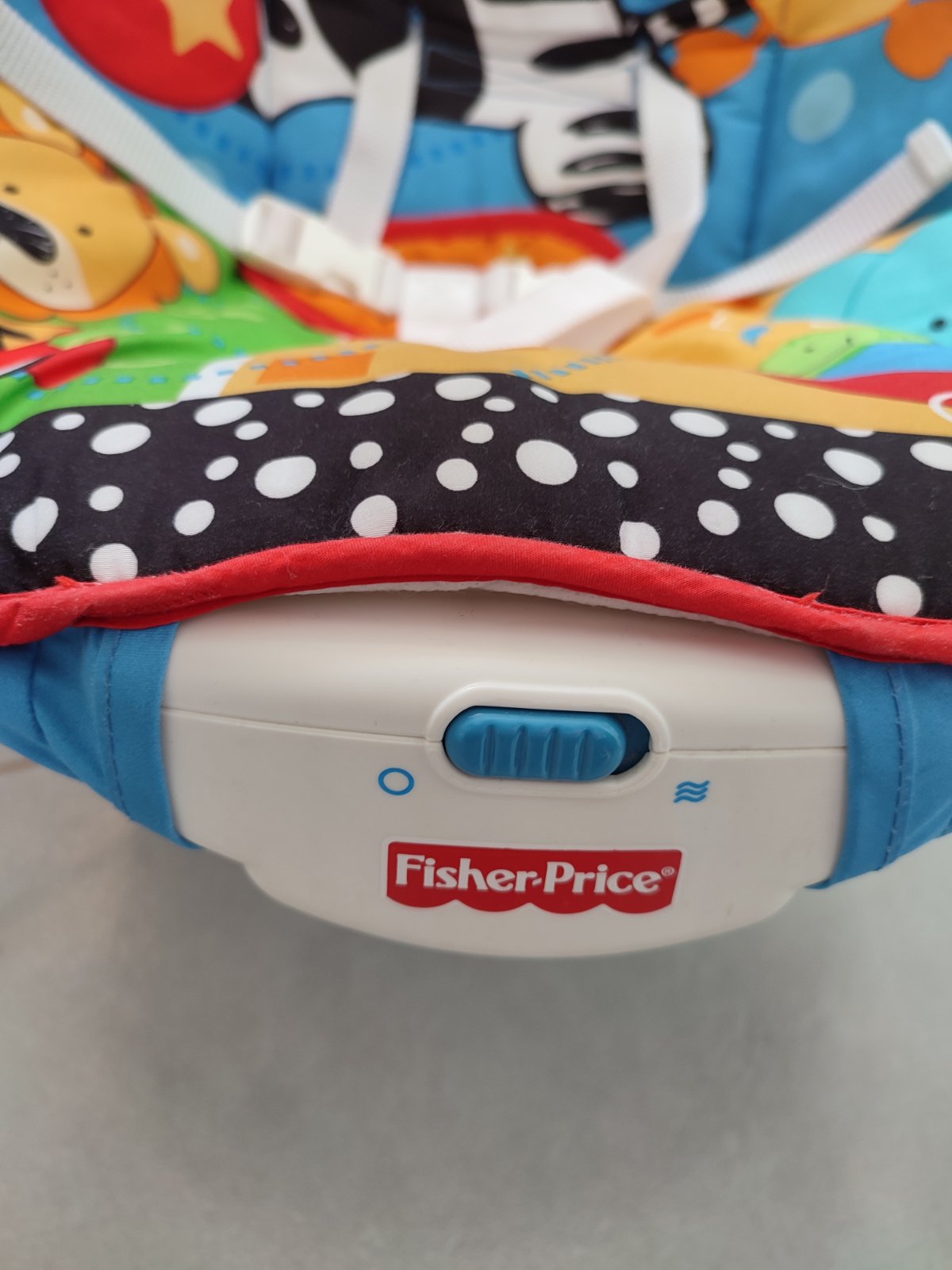 Kupovane nove, PC skoro 60€. Bez poskodeni plne funkcne. Krasne ziarive farby, vhodne rozmerovo aj pre vacsie deti, hrazda odnimatelna, potah tiez a da sa oprat. Kresielko jemne vibruje, je na baterky.