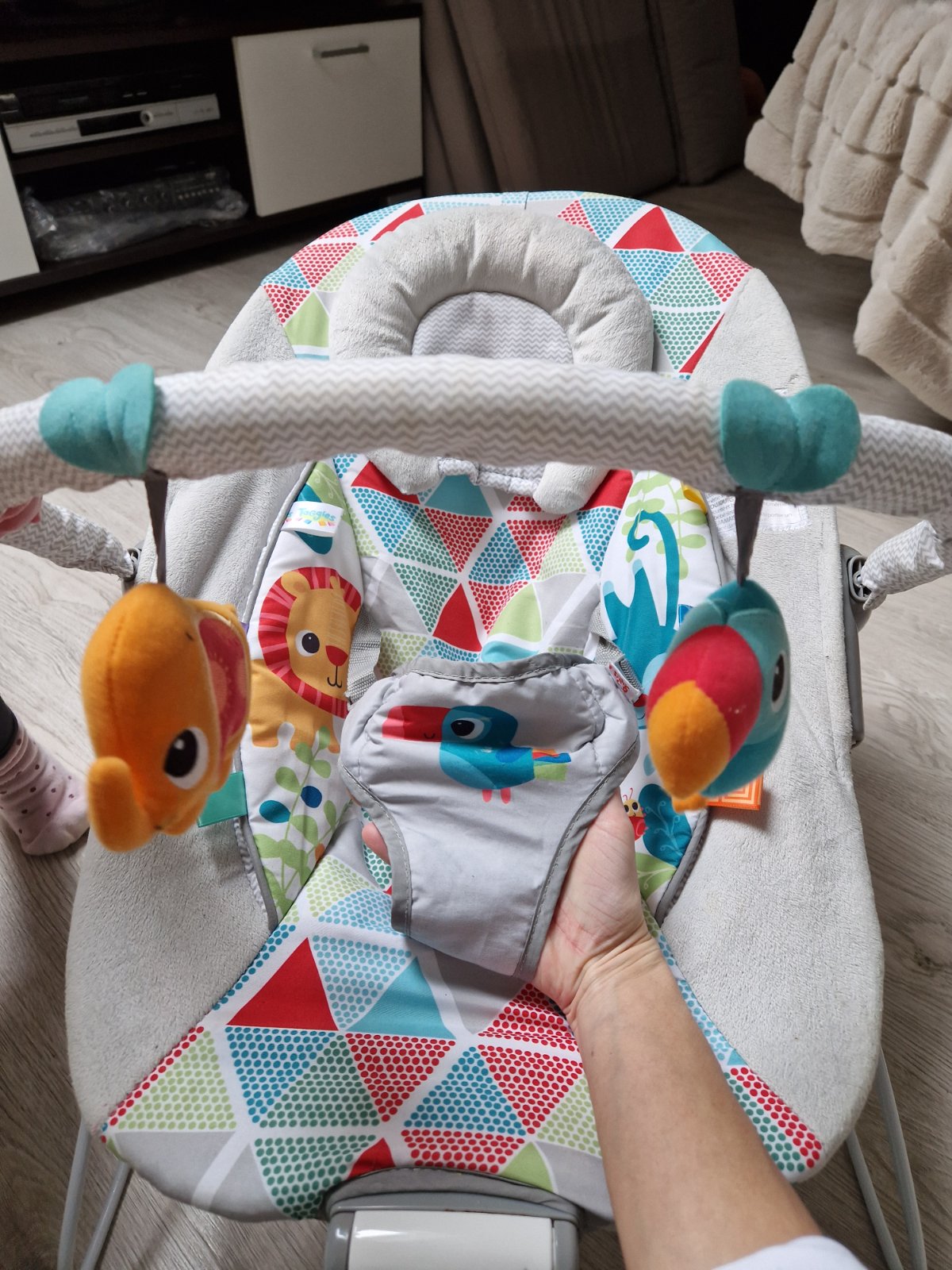 Kresielko jd v super stave bez poškodenia, plne funkcne . Posielam aj postou. Ide o detské vibrujúce a hojdacie ležadlo Bright Starts Toucan Tango.