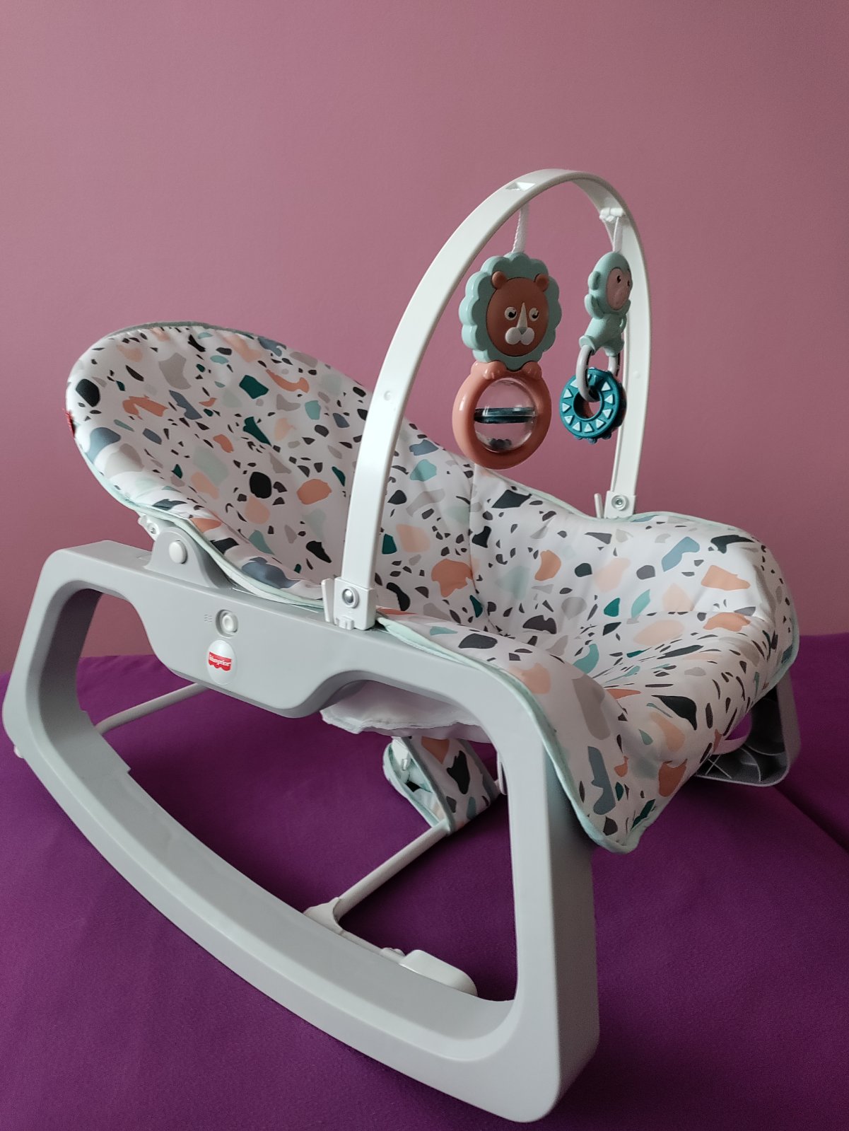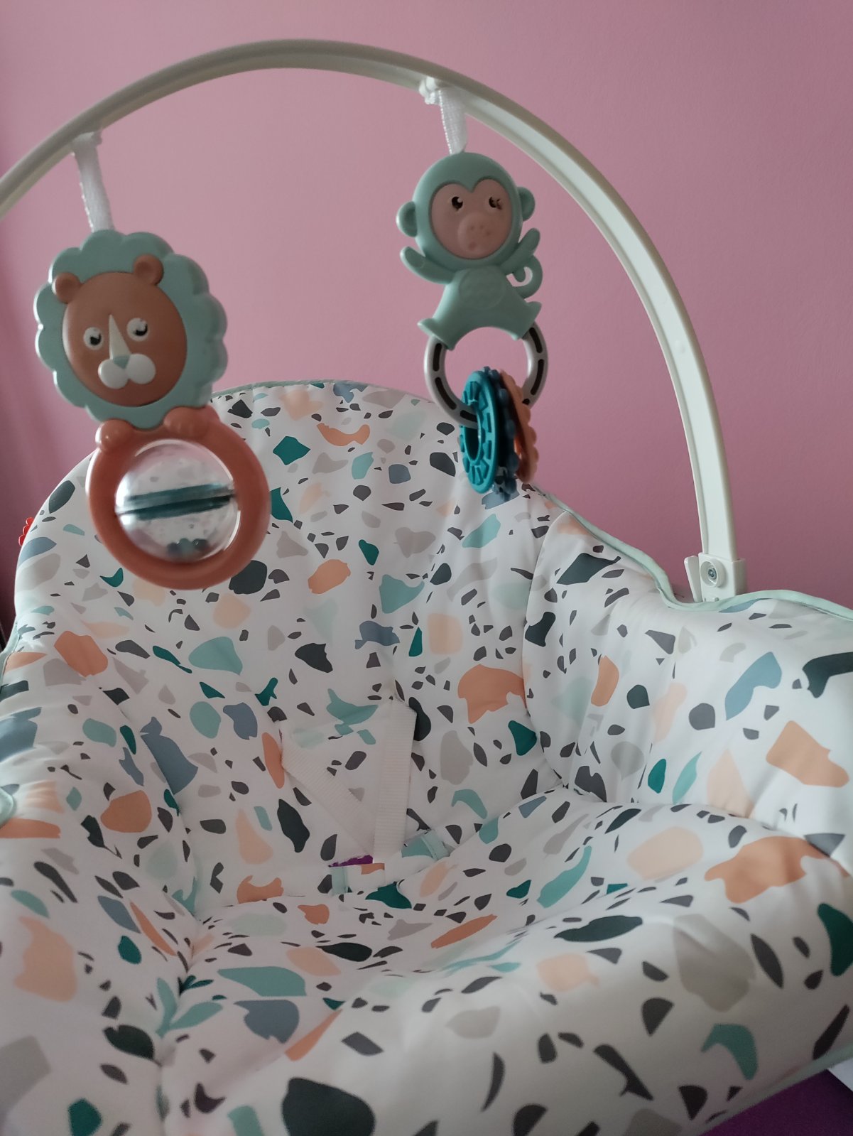 Parádne hojdacie lehátko s 3 stupňami intenzity hojdania, na výber niekoľko peknych kľudnych melódií. Poťah prateľny a lehatko sa dá zložiť. Na madle 2 visiace zvieratká. Skvele stimuluje úchop aj ...