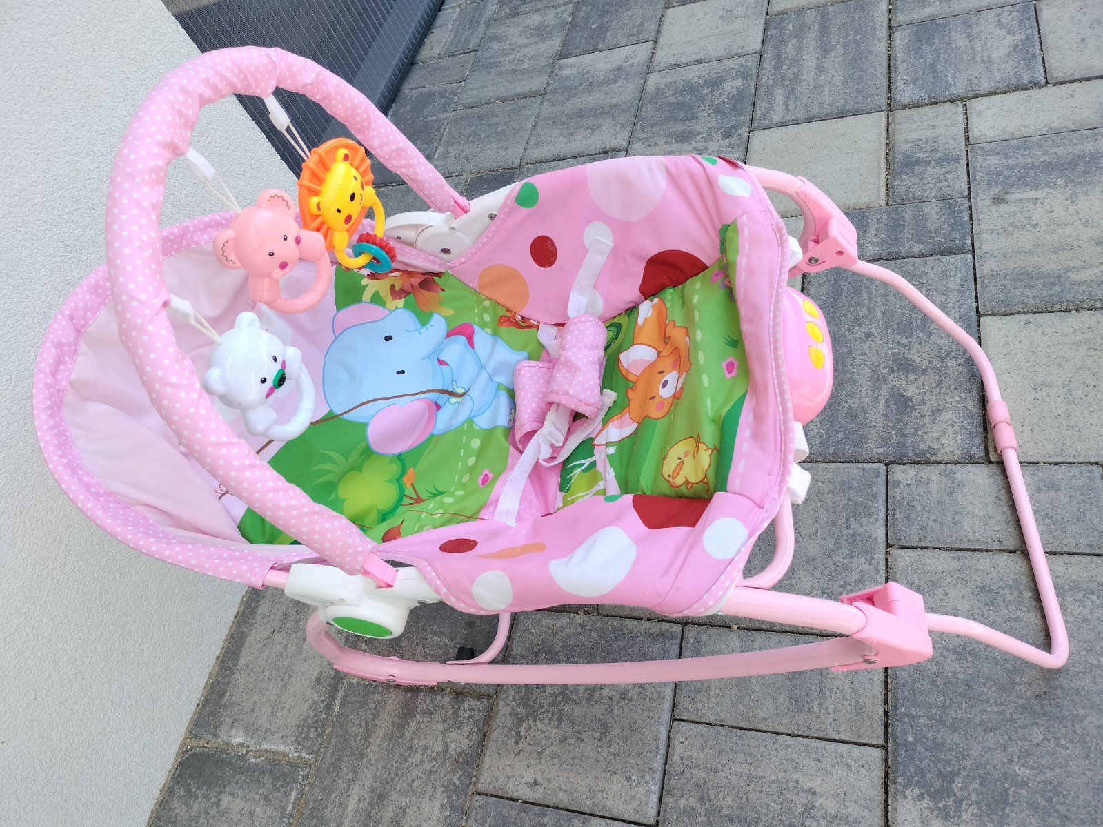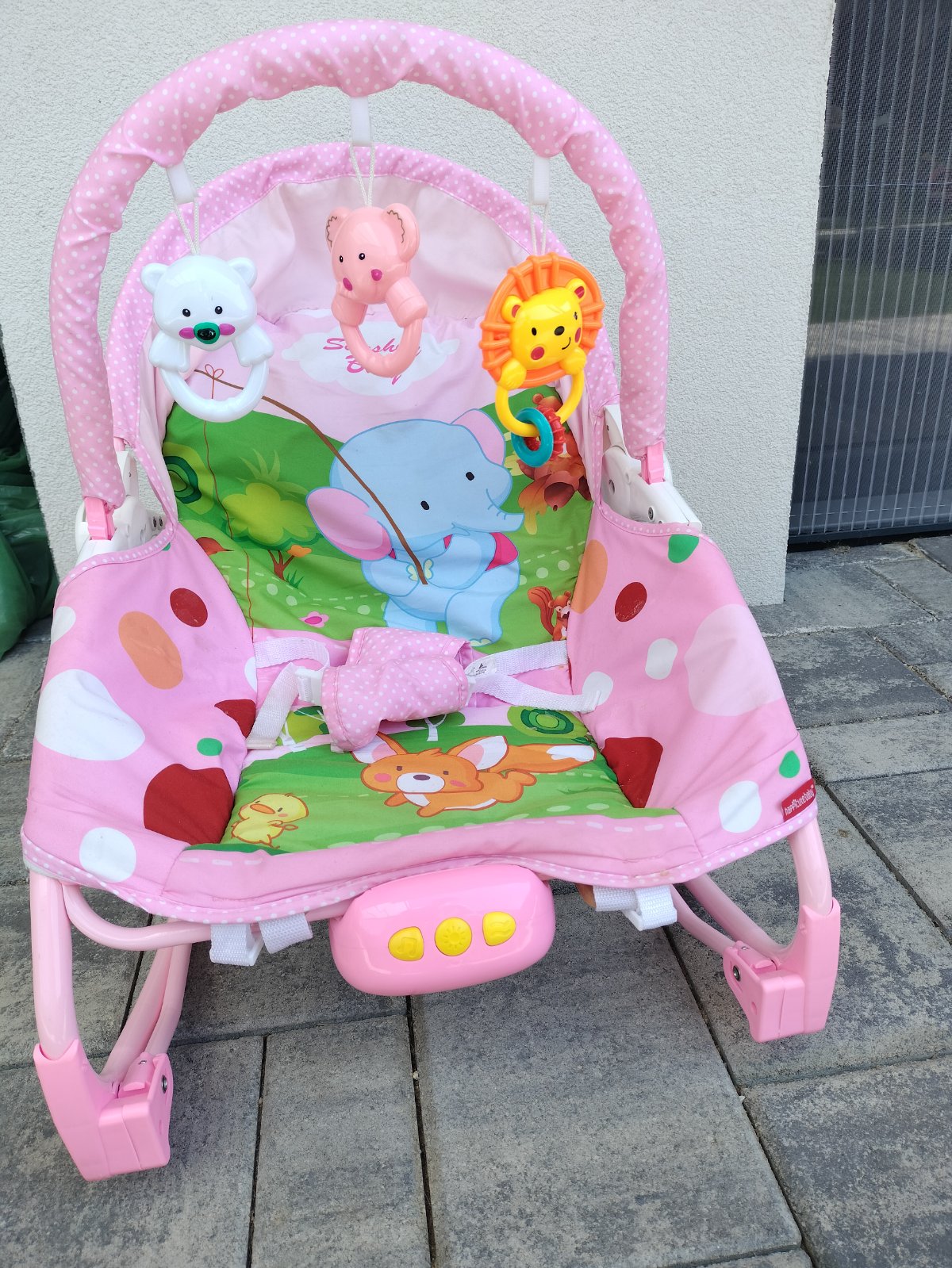 Lehátko používala dcérka asi do 10. mesiaca. Je možné ho nastaviť do 2 pozícii (viď.foto). Je k nemu aj osvetlenie s hudbou a vibrovanim (stačí vložiť batérie).