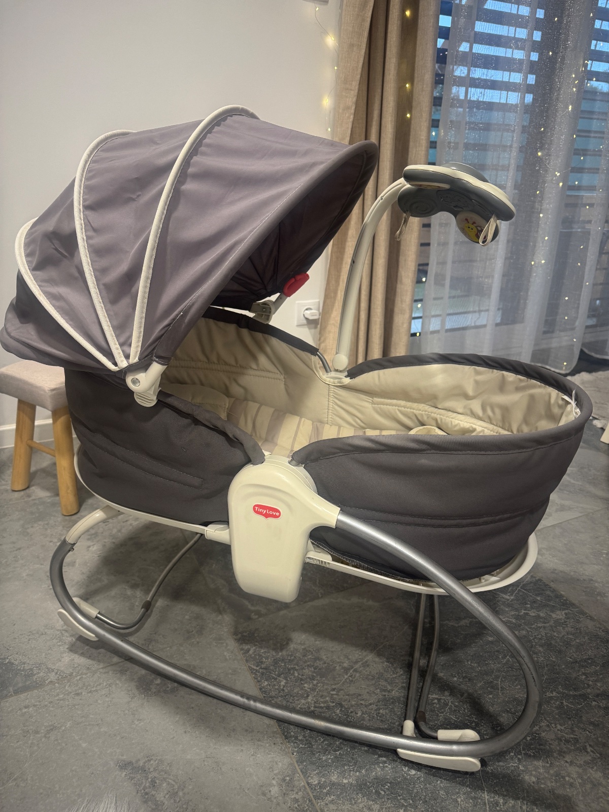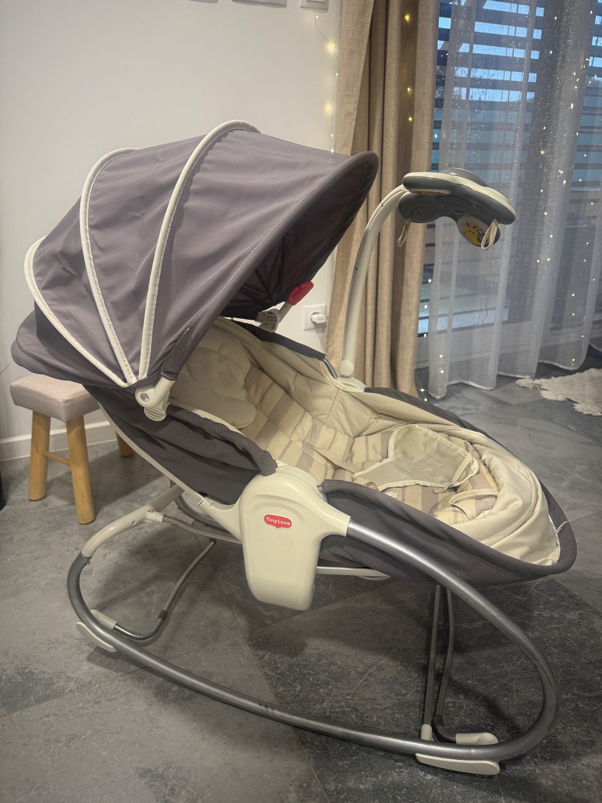 Predám detskú kolísku značky Tiny Love vo veľmi dobrom stave. Kolíska sa dá dať aj na stabilno je pohodlná a ideálna pre bábätko od narodenia. Dá sa polahnúť + zdvihnúť do sedu. Má jemné vibrovanie (treba vymeniť baterky ja som nepoužívala) striešku proti svetlu a vyhrávajúcu,blikajúci hrazdičku s hračkou, ktorá zabaví dieťatko.