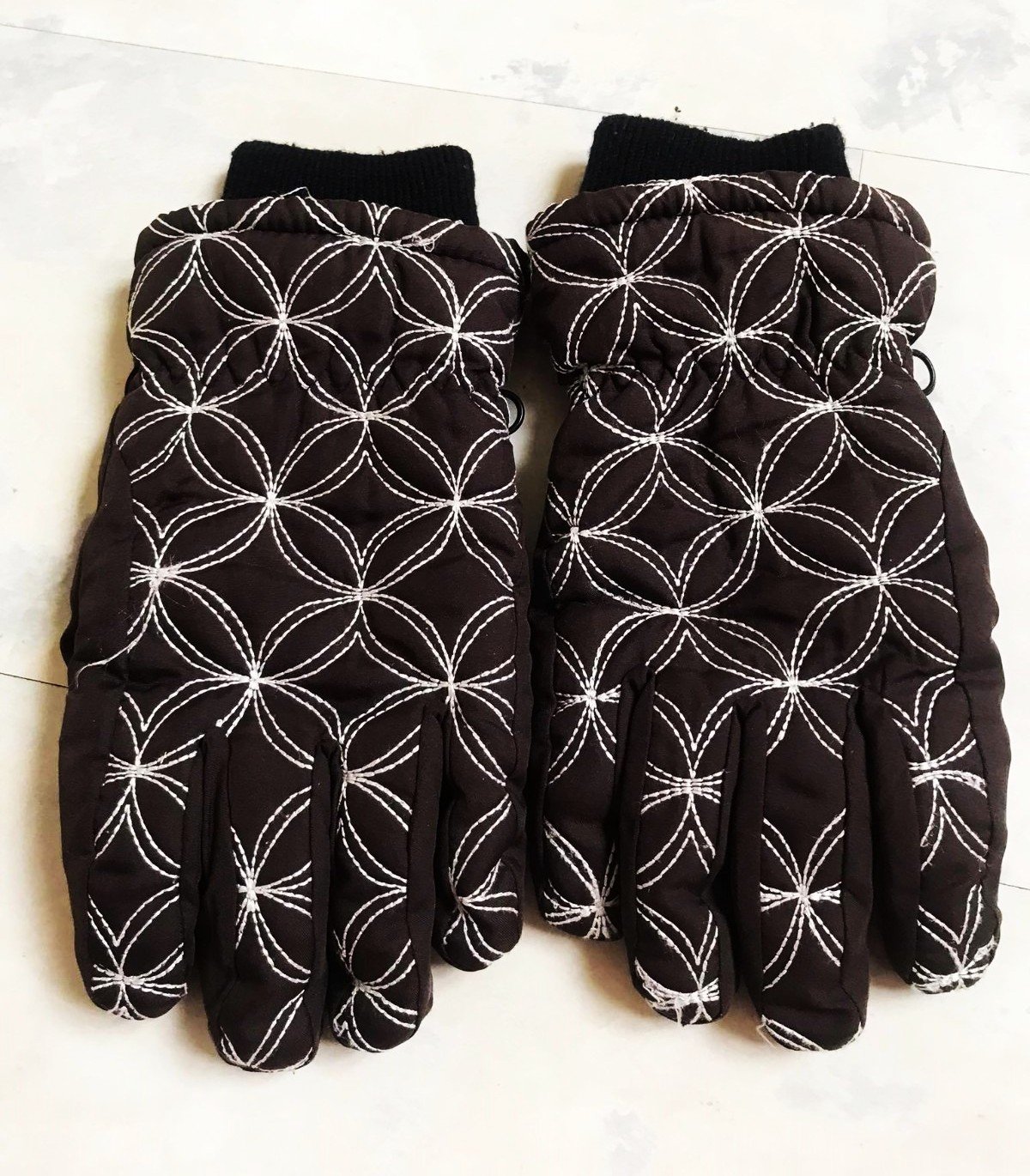 nosené vkusné prešívané zateplené rukavice s rumbami,uvedená veľkosť S,ale sú vhodné veľkosťou na S/M