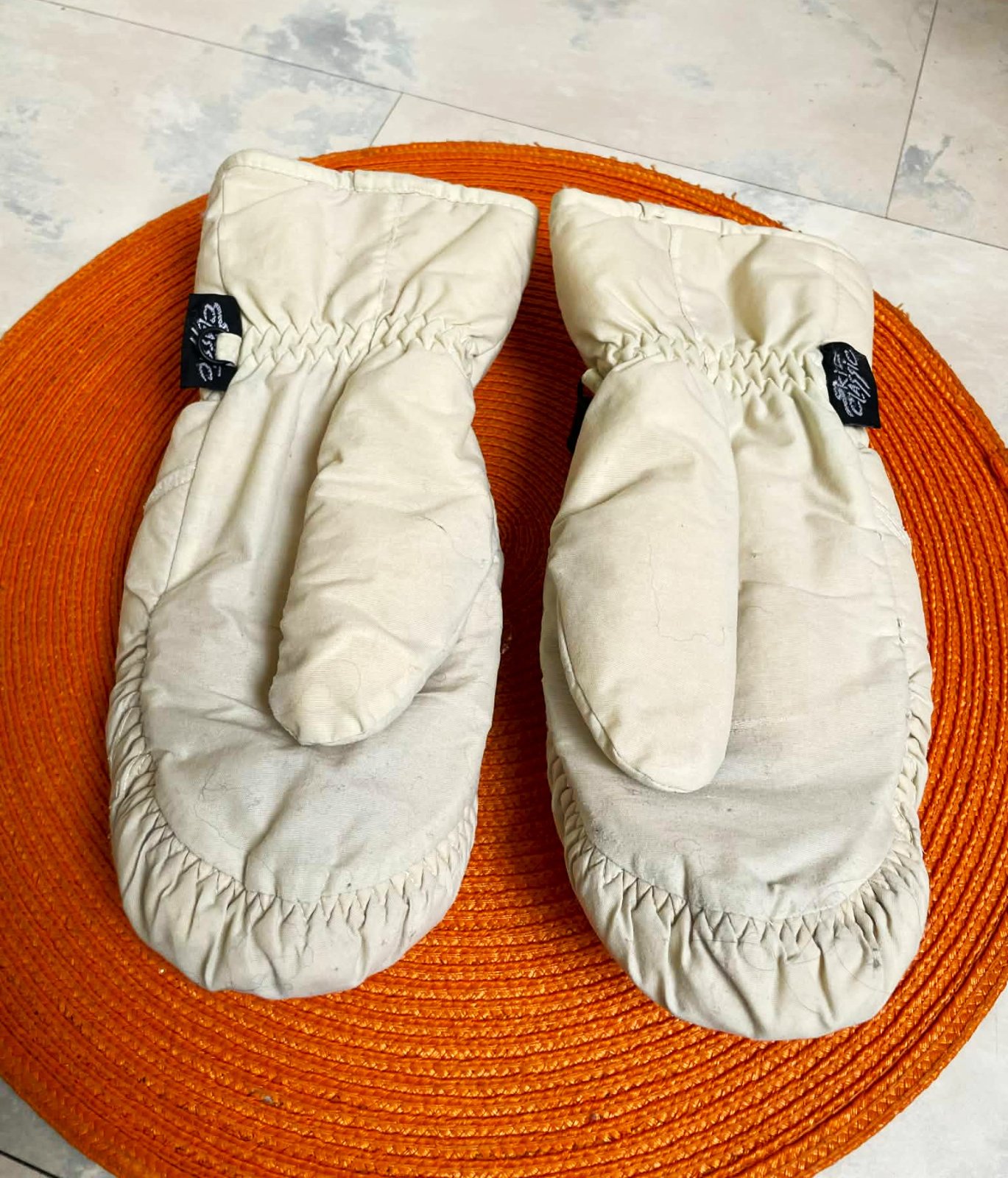 kvalitné vysoké unisex nepremokavé lyžiarske rukavice,farba maslovo biela - krémová,veľmi tepléteplé,