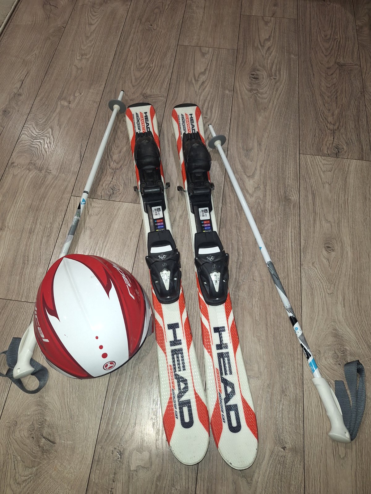 Predám detské lyže Head 87 cm, nastaviteľné + palice 80cm + prilba.