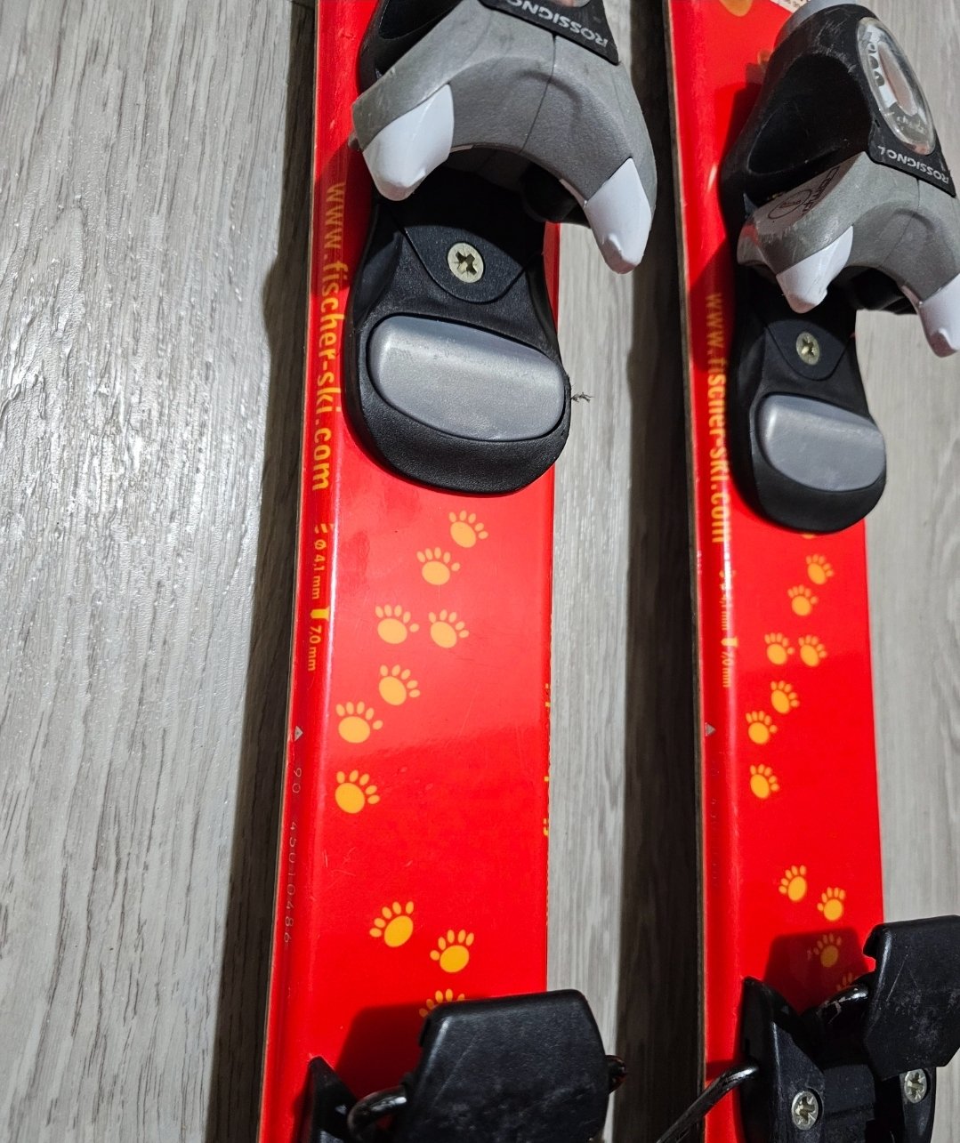 Predám málo používané detské lyže. Dĺžka lyží je 88cm. Na jednej z lyží je kúsok odlomená zadná časť.