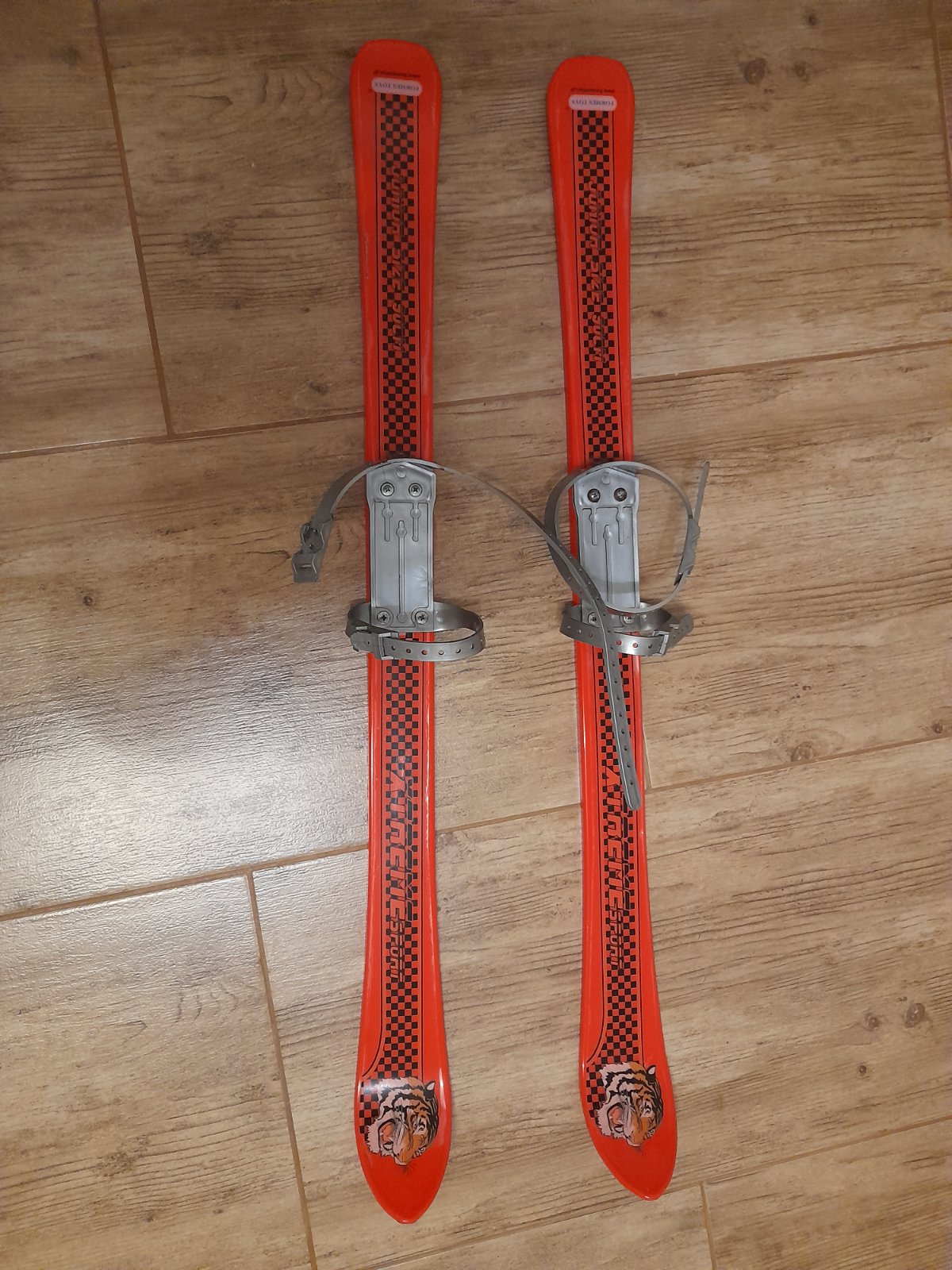 Predám prvé detské lyže,zapínajú sa na topánku. Párkrát vyskúšané,plne funkčné.Dĺžka 90 cm.