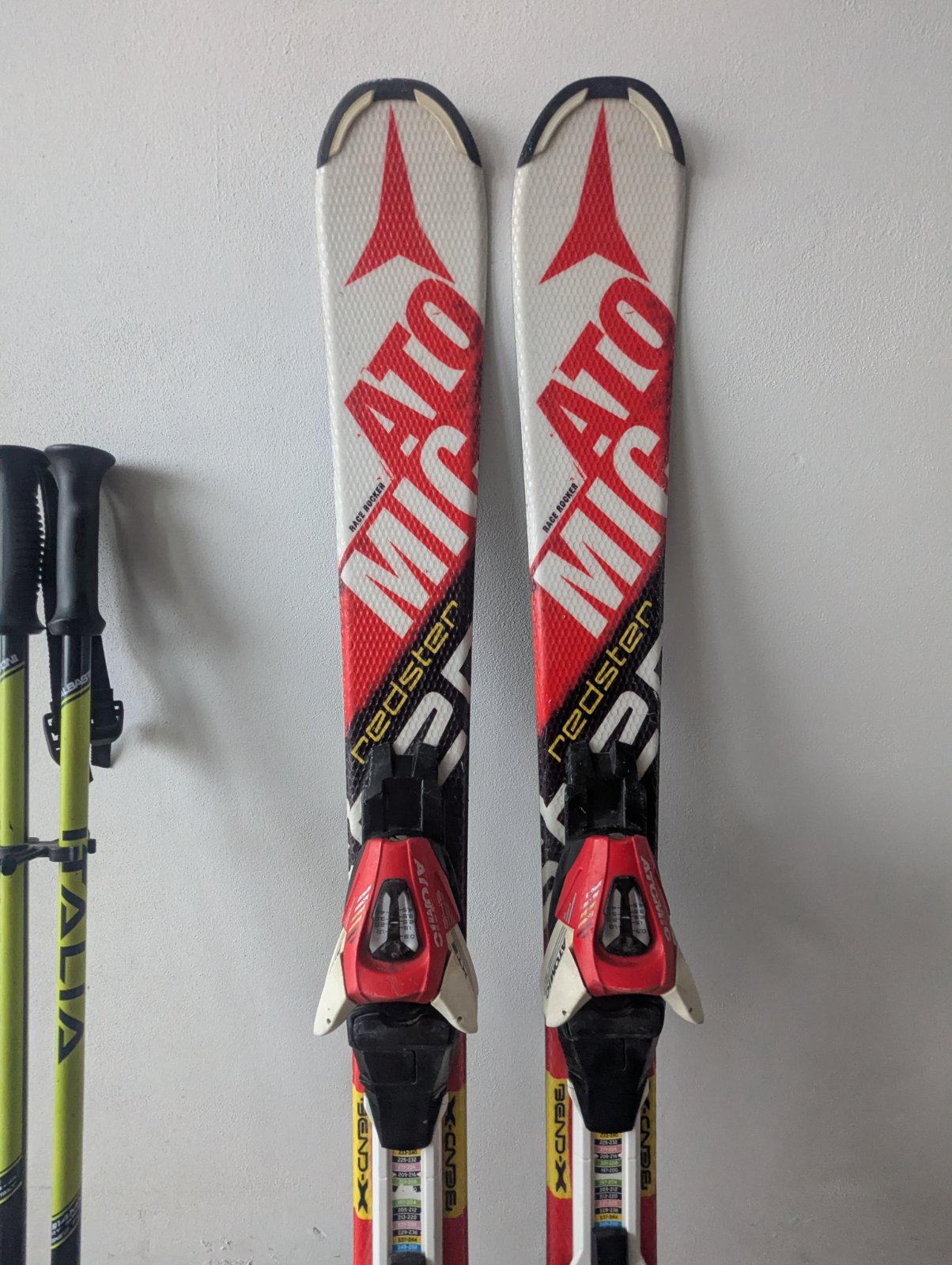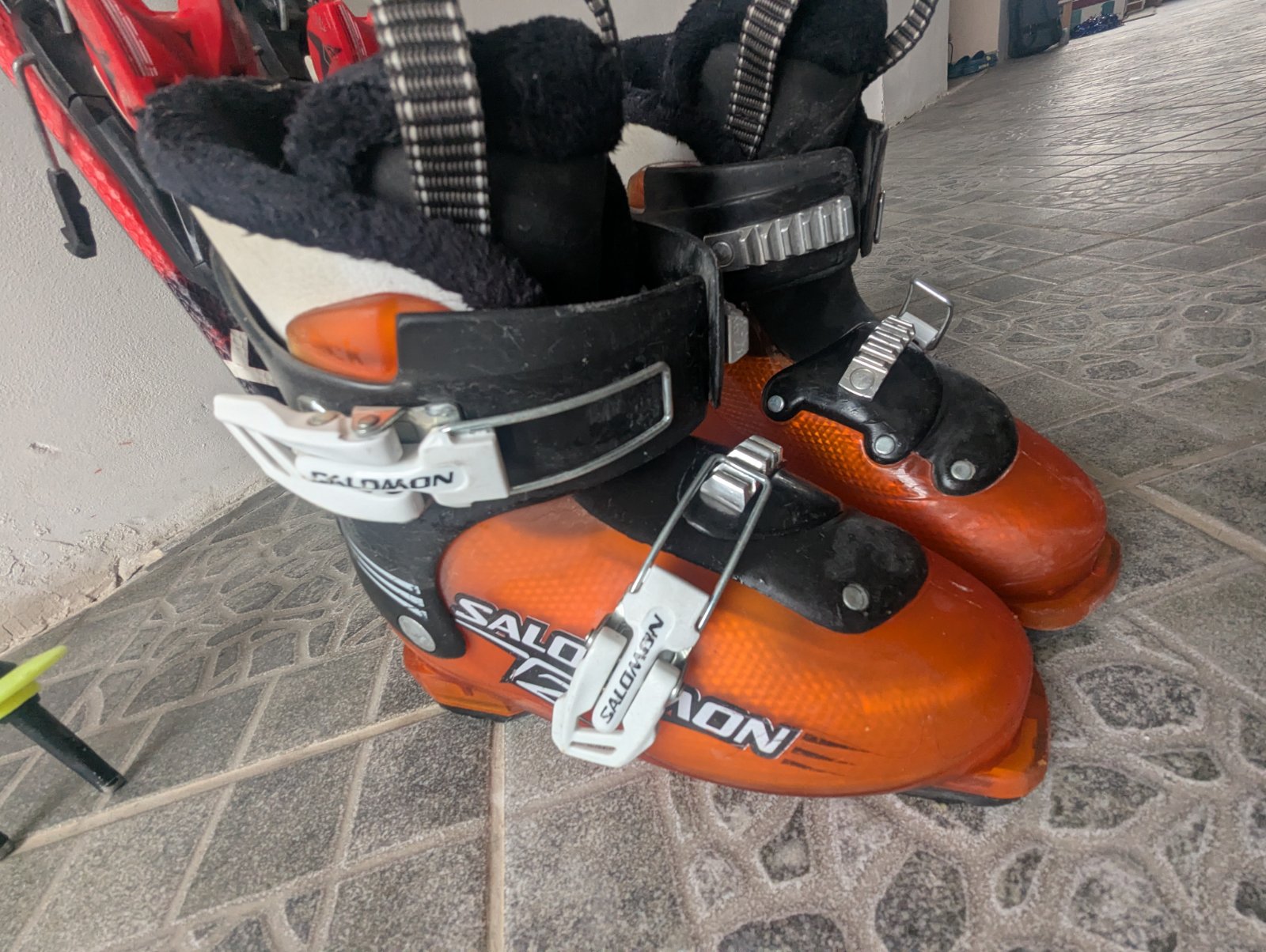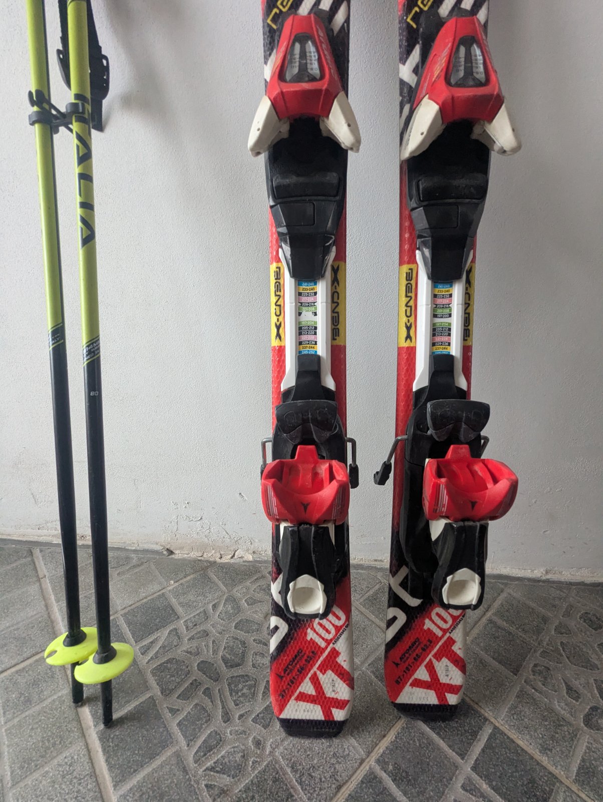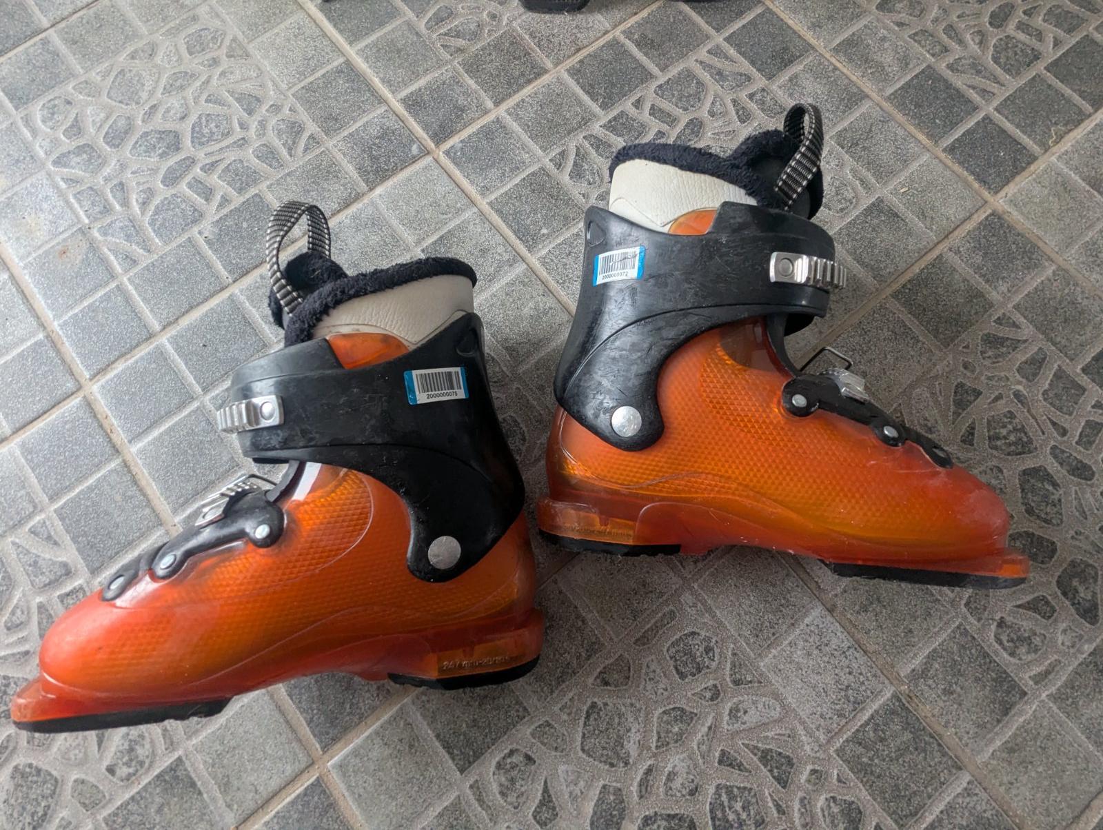 Predám detský lyžiarsky set v bezchybnom stave, lyže servisované. Prvé detské lyže Atomic Redster race rocker, dĺžka 100 CM. K tomu lyžiarky Salomon na dve klipsne. Vnútorná dĺžka, mondo 20 CM, zodpovedá veľkosti 30 - 31. Vonkajšia dĺžka 247 mm.