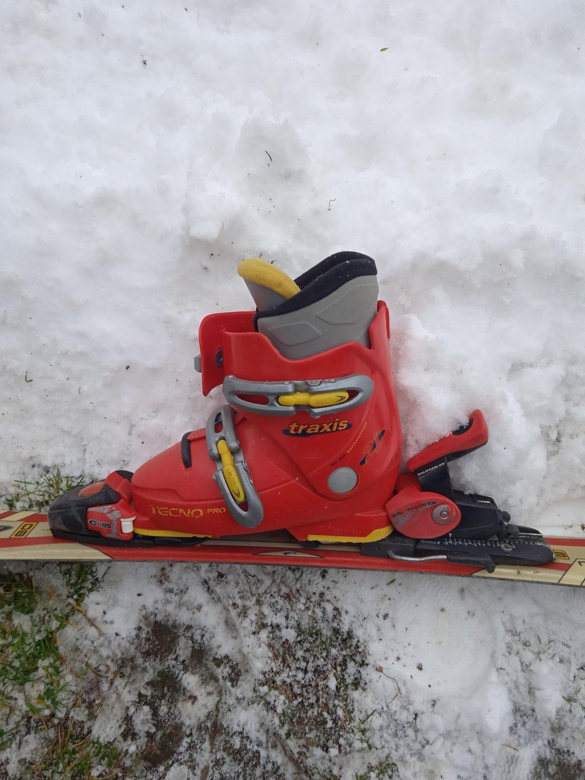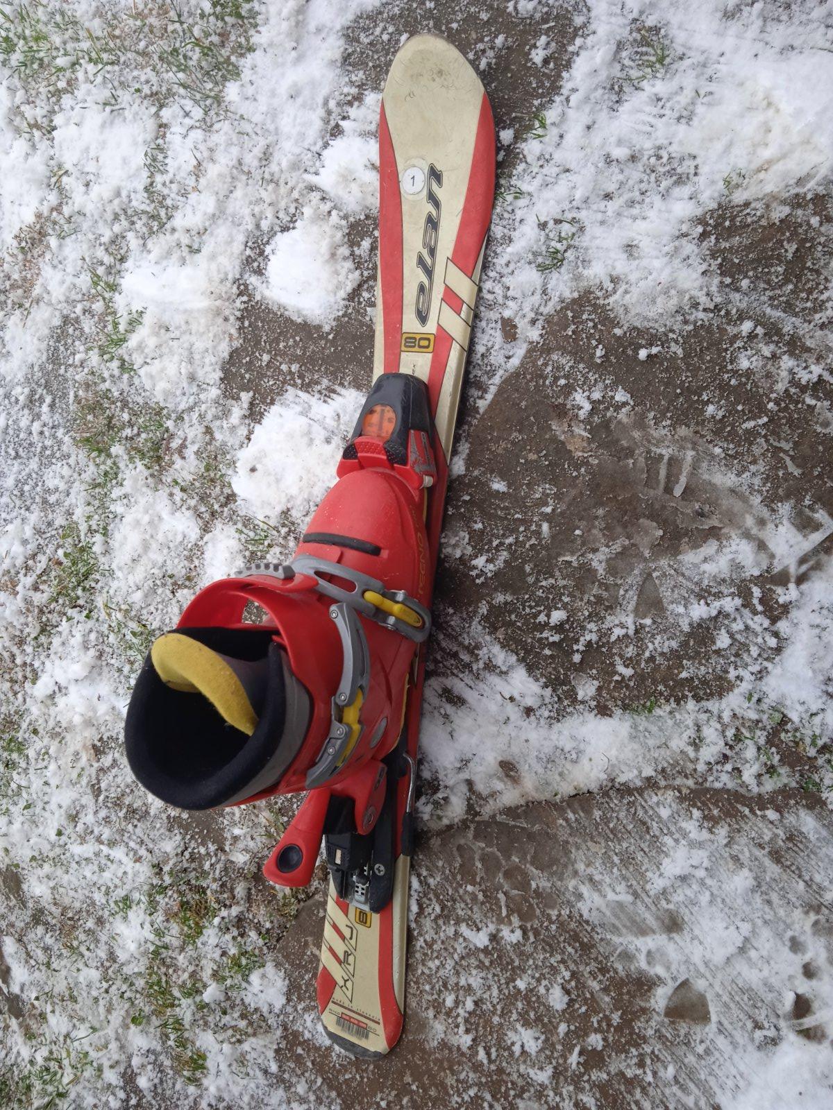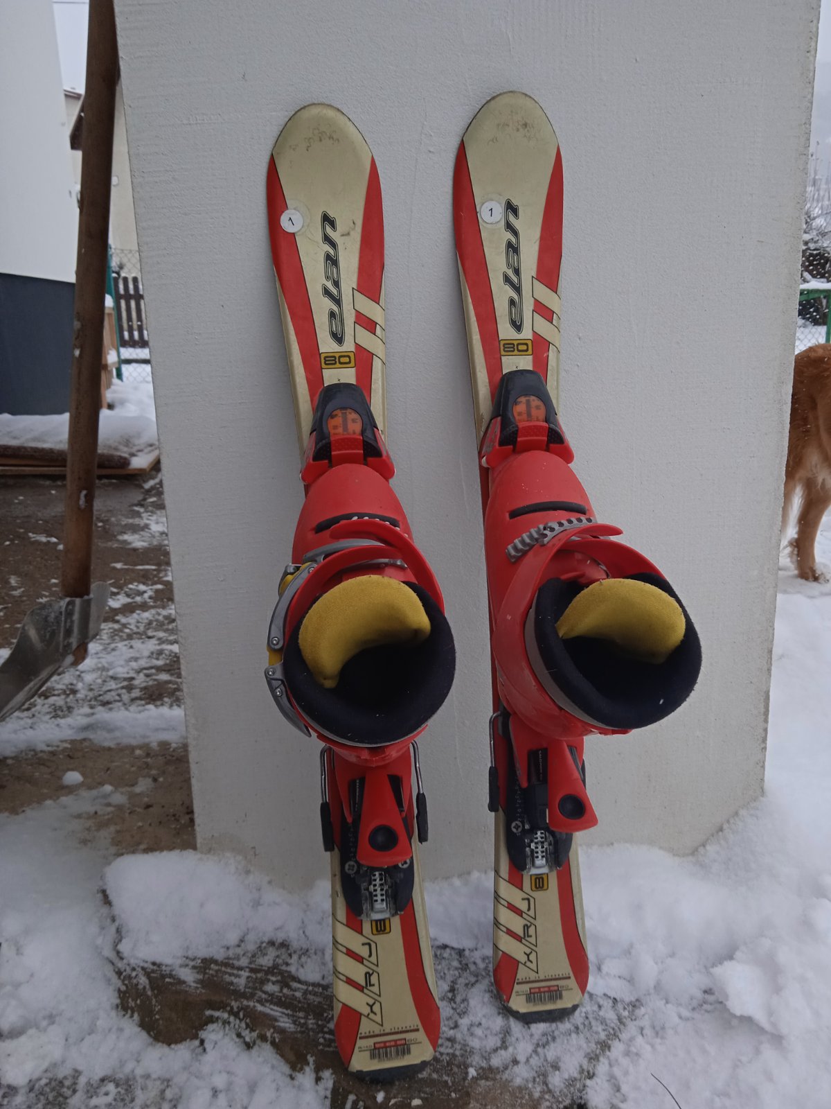 Predám tieto detské lyže, veľkosť 80. Sú spolu aj s lyžiarkami. Plne funkčné.